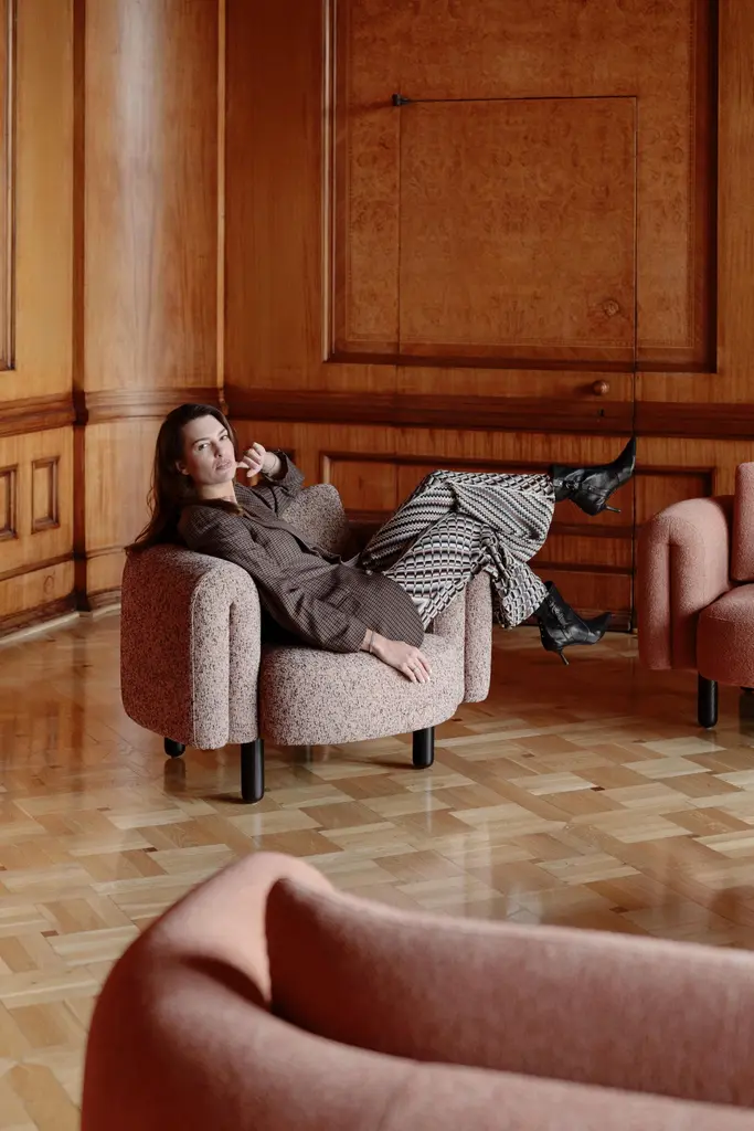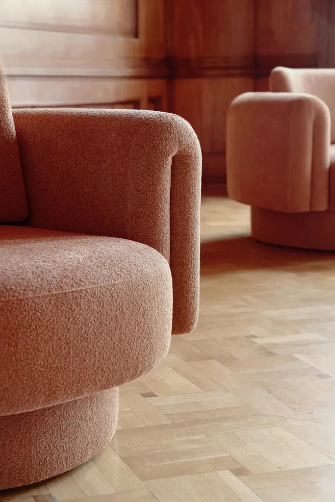 Designed by Grynasz StudioWinner of the 2025 red dot design awardFabric composition: 55% PL 45% COThe BOFII collection is inspired by the designs of the Spanish architect, considered one of the main representatives of postmodernism in contemporary architecture - Ricardo Bofill. The unusual forms of the buildings and spaces he designed and his thoughtful use of colour are considered some of the finest examples of this style.The expressive, soft lines of the furniture are reminiscent of Bofill's harmonious architectural structures. The forms are soft yet monumental, giving the interiors both a lightness and a prestigious feel. The rounded shapes and organic proportions are reminiscent of the dialogue between form and function that Bofill experimented with in his designs.The upholstery in pastel and earthy tones is inspired by natural materials: sandstone, concrete or limestone, which were often used in buildings designed by the architect. The soft, boucle texture of the upholstery materials gives the collection a warm and cosy feel, while alluding to the rawness and authenticity of natural surfaces.