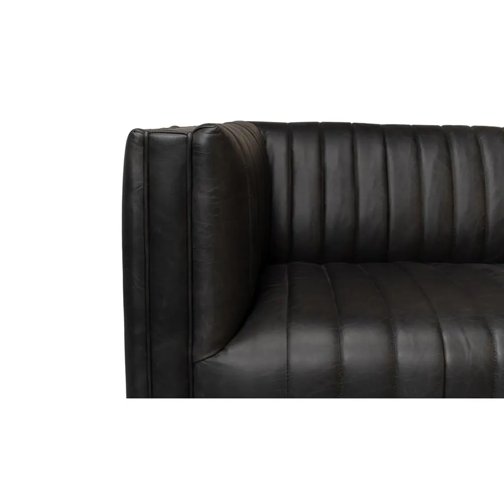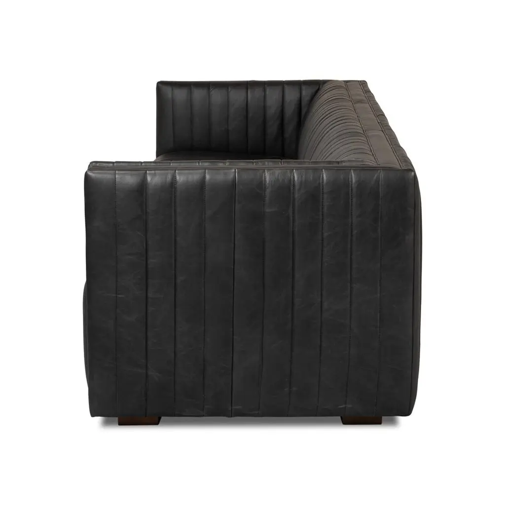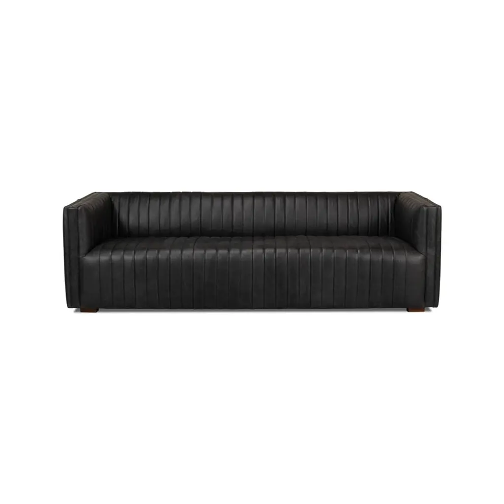 The eloquent sofa has a unique modern channeled leather design to the backrest, seat, arms and rear. At 96 inches long the generous proportions allow for comfortable conversations and will be a statement and any modern or traditionally designed room.Dimensions: 96" W x 36" D x 29" HSeat - 81" W x 24" D x 19" HArms - 29" H