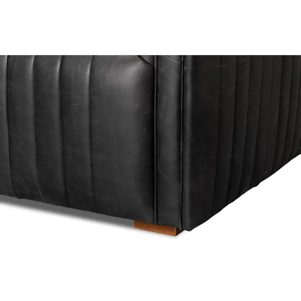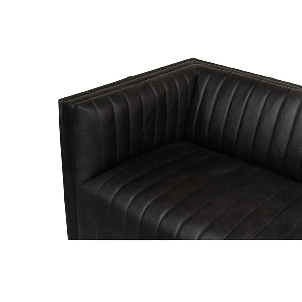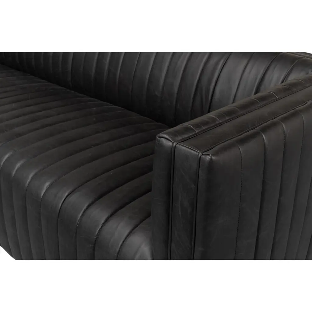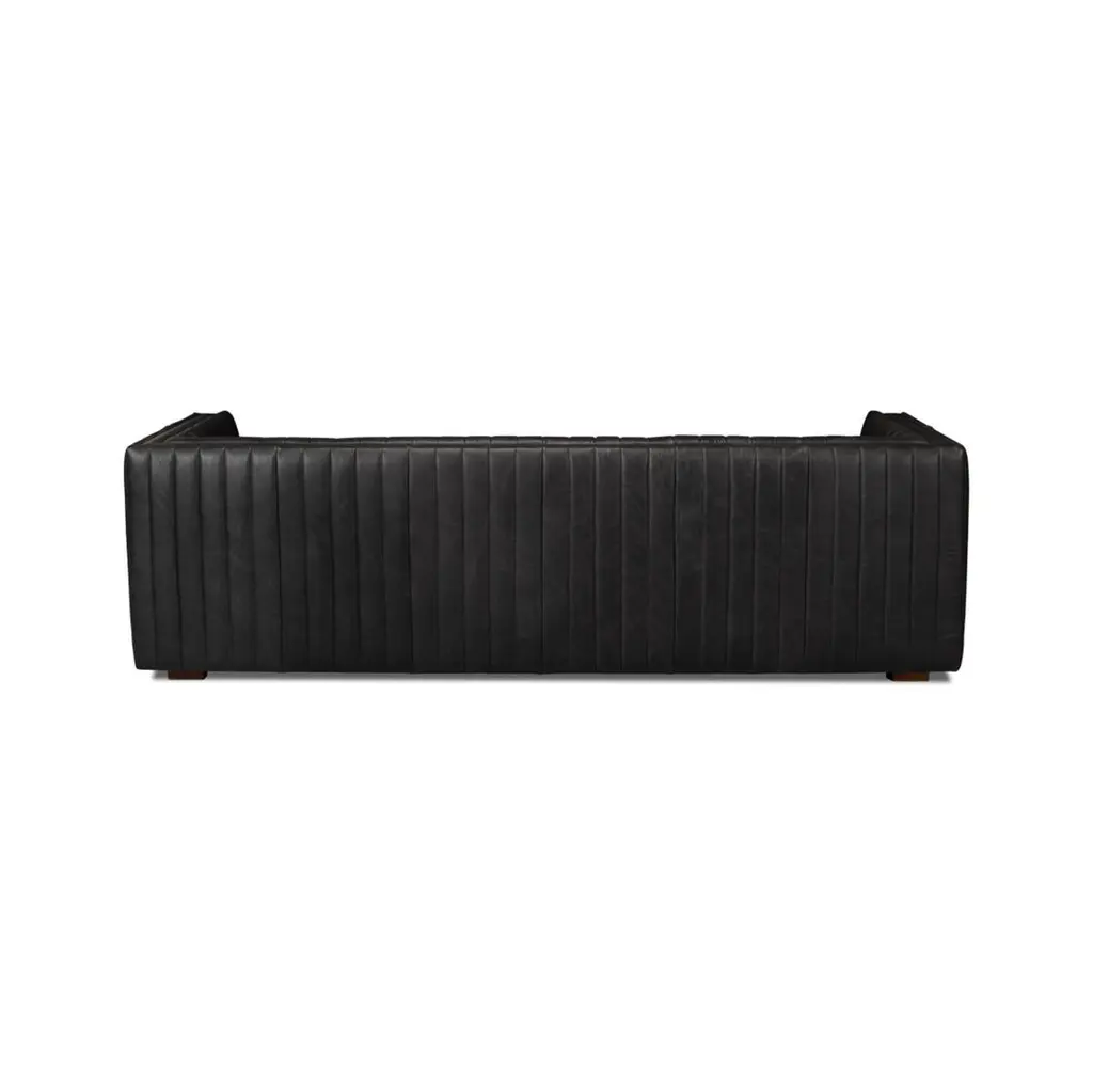 The eloquent sofa has a unique modern channeled leather design to the backrest, seat, arms and rear. At 96 inches long the generous proportions allow for comfortable conversations and will be a statement and any modern or traditionally designed room.Dimensions: 96" W x 36" D x 29" HSeat - 81" W x 24" D x 19" HArms - 29" H