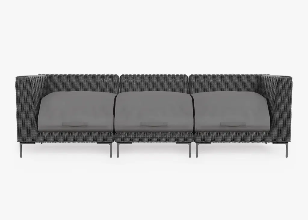 Enjoy indoor comfort outside. Stylish and durably designed from All-Weather Wicker, Outer’s modular patio furniture invites you to relax on luxuriously comfortable memory foam cushions. The built-in, easy to use OuterShell® cover protects the cushions when not in use, and features Velcro that secures it in place and a handle for convenient carrying and storage. Includes 2 corner chairs and 1 armless chair that you can reconfigure.