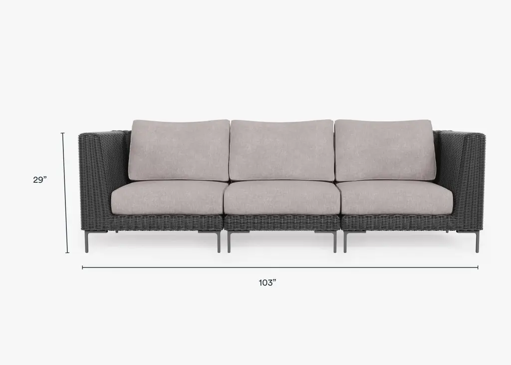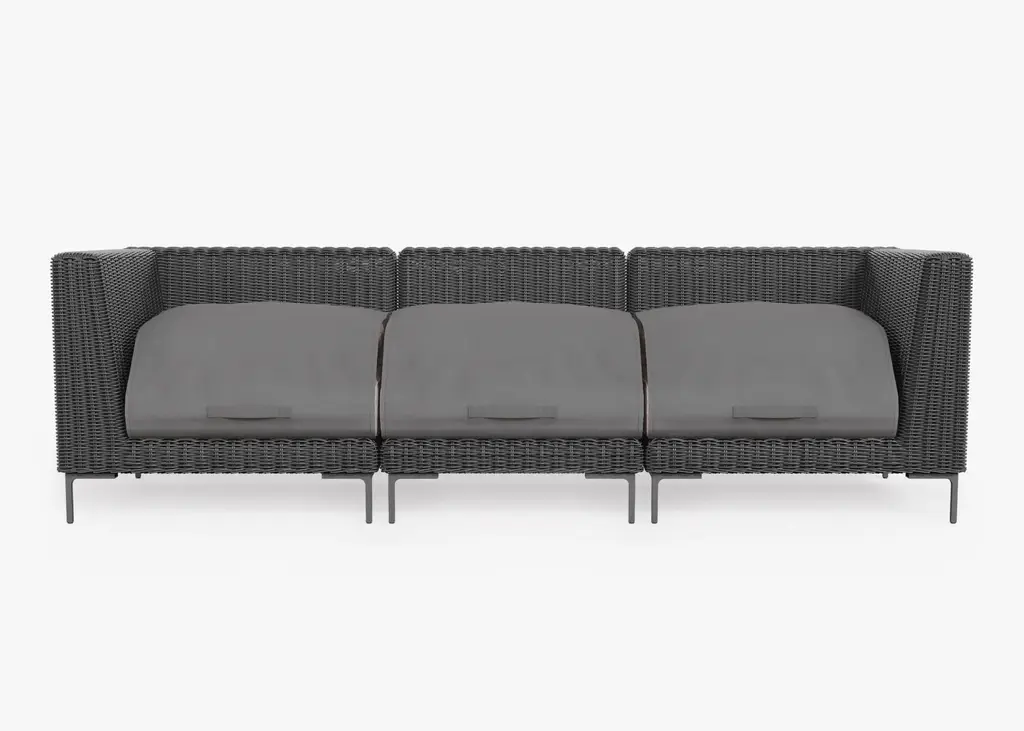 Enjoy indoor comfort outside. Stylish and durably designed from All-Weather Wicker, Outer’s modular patio furniture invites you to relax on luxuriously comfortable memory foam cushions. The built-in, easy to use OuterShell® cover protects the cushions when not in use, and features Velcro that secures it in place and a handle for convenient carrying and storage. Includes 2 corner chairs and 1 armless chair that you can reconfigure.