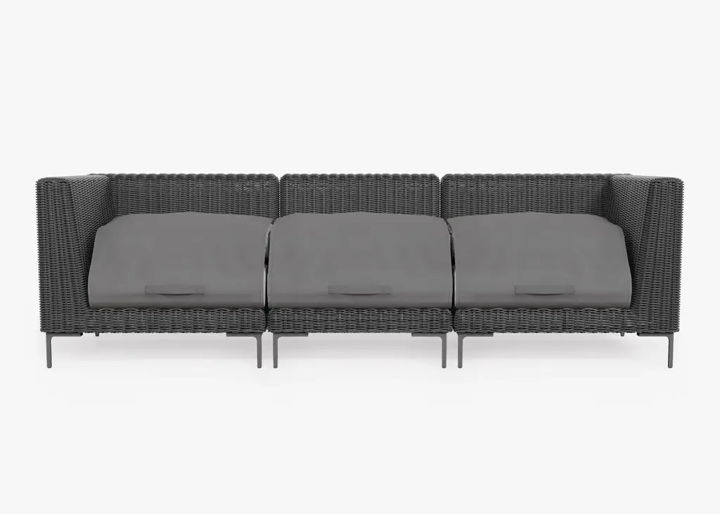 Enjoy indoor comfort outside. Stylish and durably designed from All-Weather Wicker, Outer’s modular patio furniture invites you to relax on luxuriously comfortable memory foam cushions. The built-in, easy to use OuterShell® cover protects the cushions when not in use, and features Velcro that secures it in place and a handle for convenient carrying and storage. Includes 2 corner chairs and 1 armless chair that you can reconfigure.