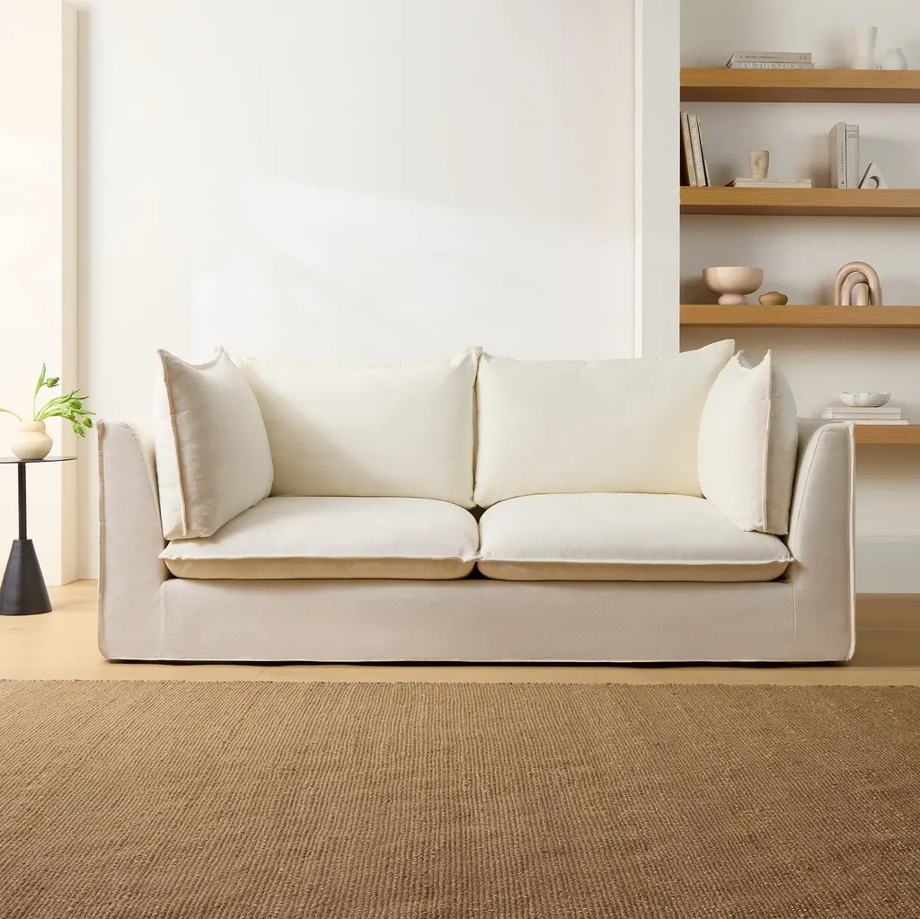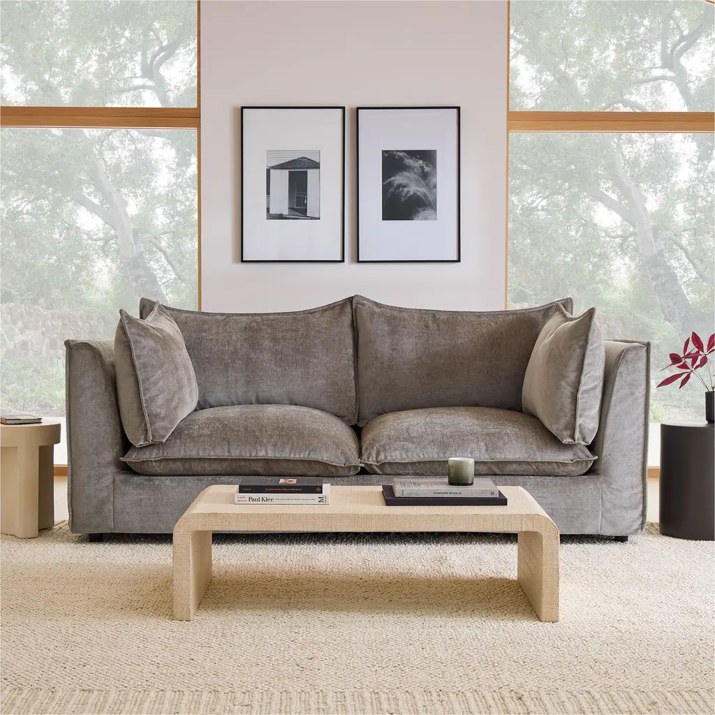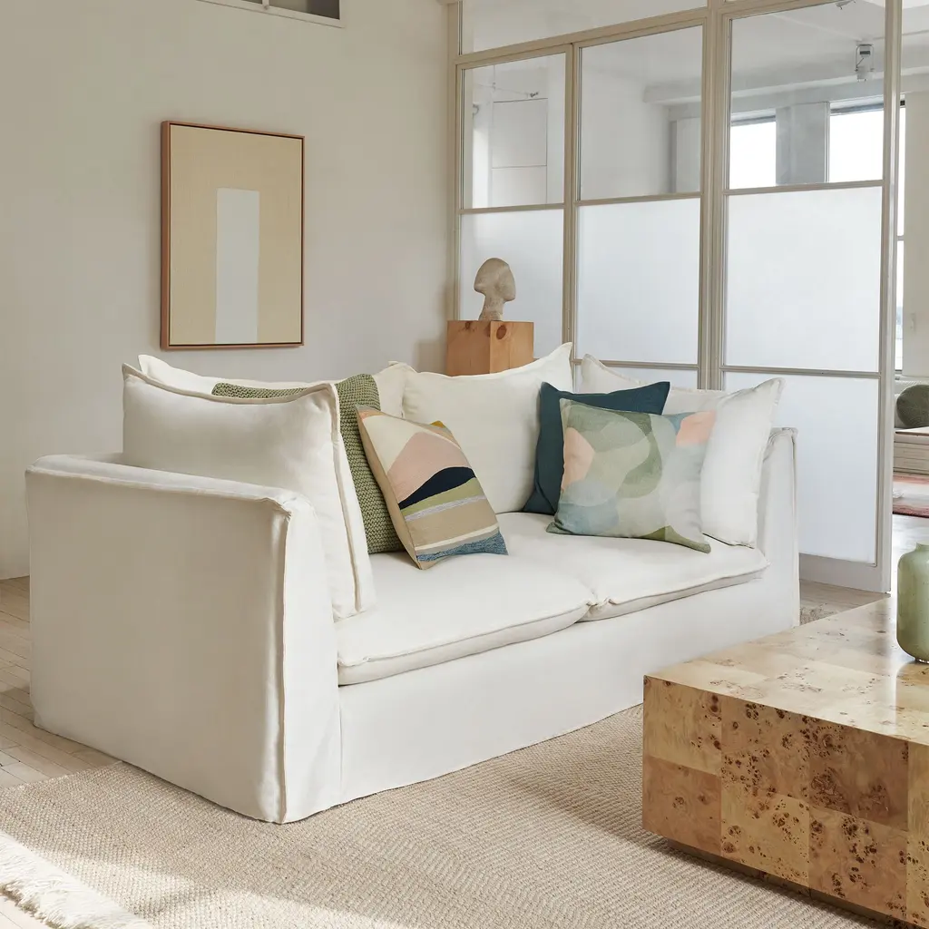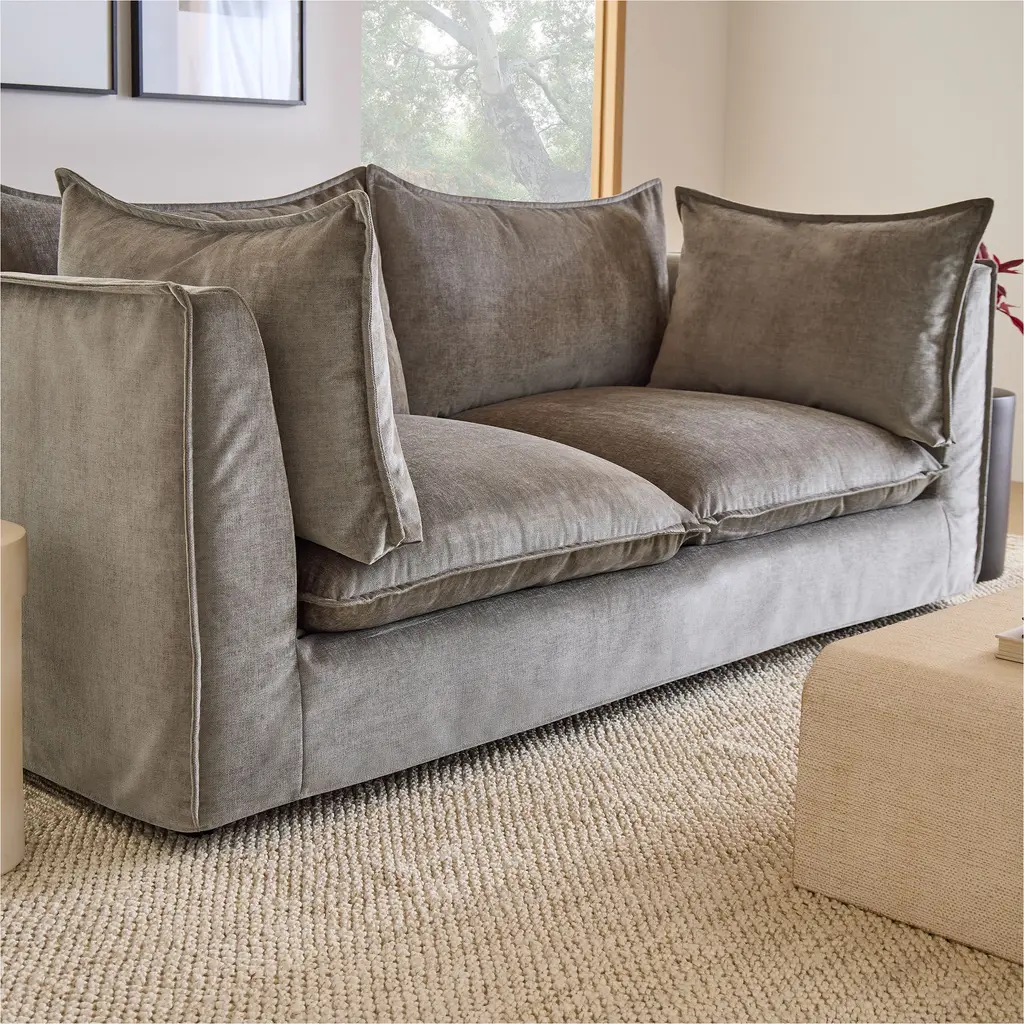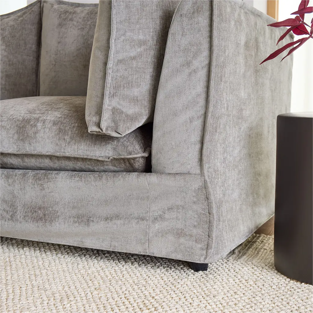 Framed with chic flange edges for a tailored touch. Cozy cloud-like cushions for sink-right-in comfort. Removable skirted slipcover makes cleaning a breeze. Contract Grade, so you know it's built to last.