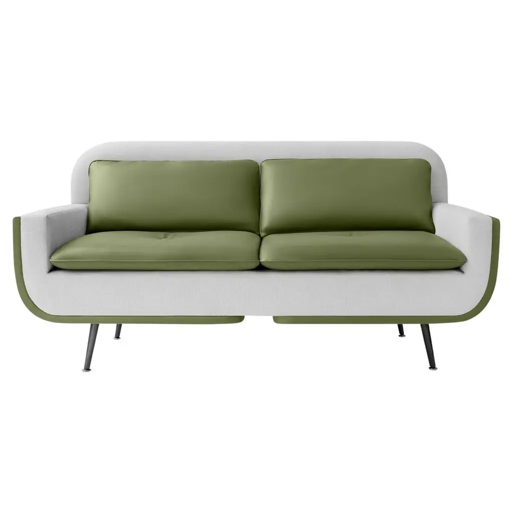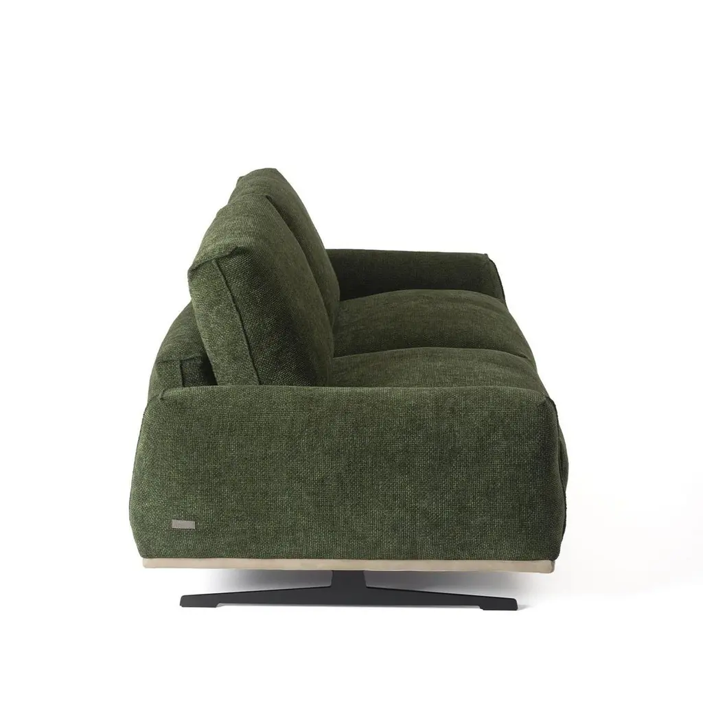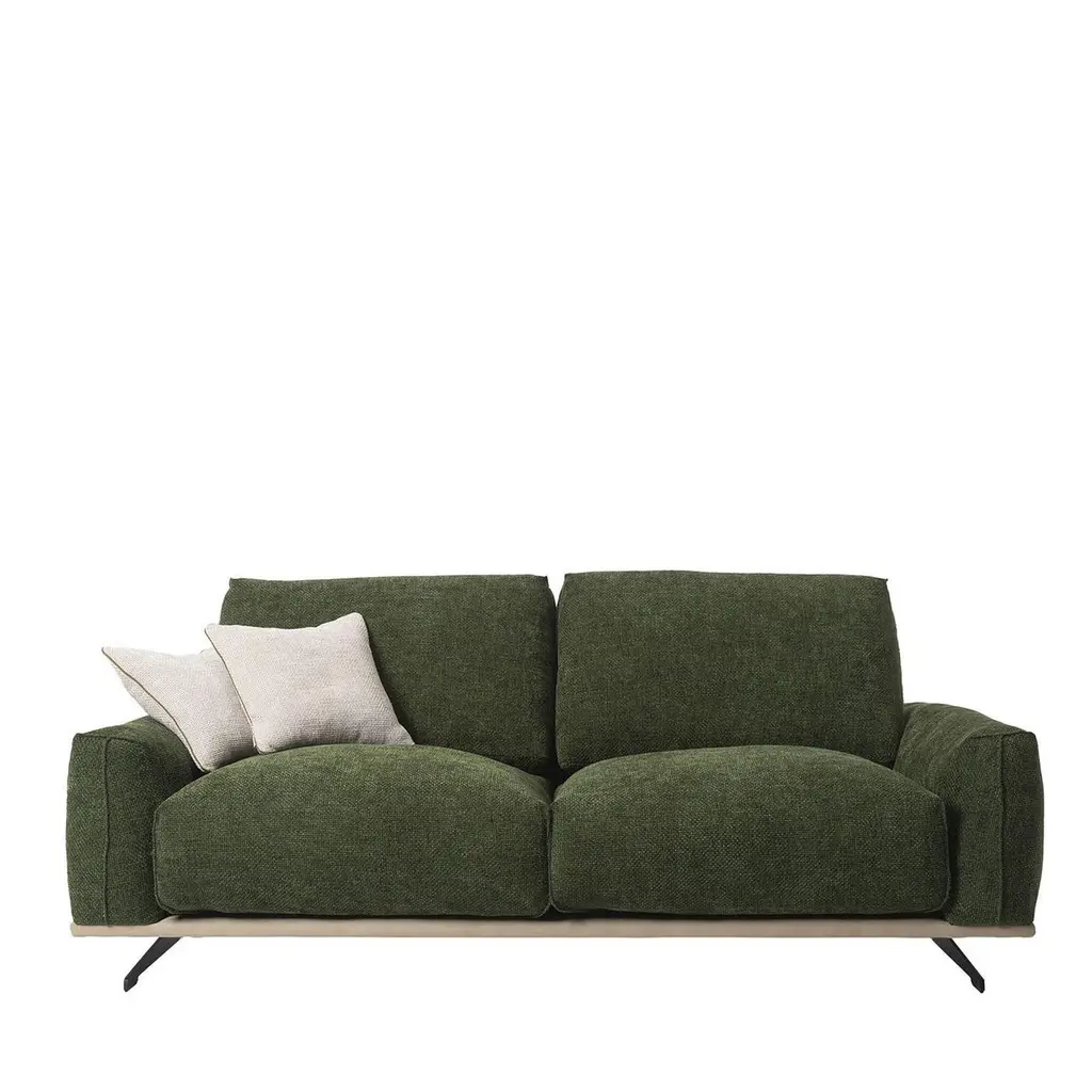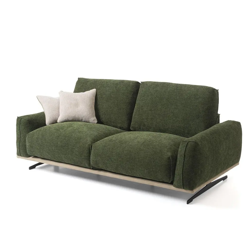 BBoboli is the perfect sofa for those seeking extra comfort with soft, welcoming lines and the practicality of a high-leg design. The seat, back, and armrests rest on a platform with sled legs, allowing for creative fabric and color combinations. The cushions offer maximum comfort with multi-density polyurethane and certified goose down. Optional headrests and eco-friendly fabrics are available. Decorative cushions not included.