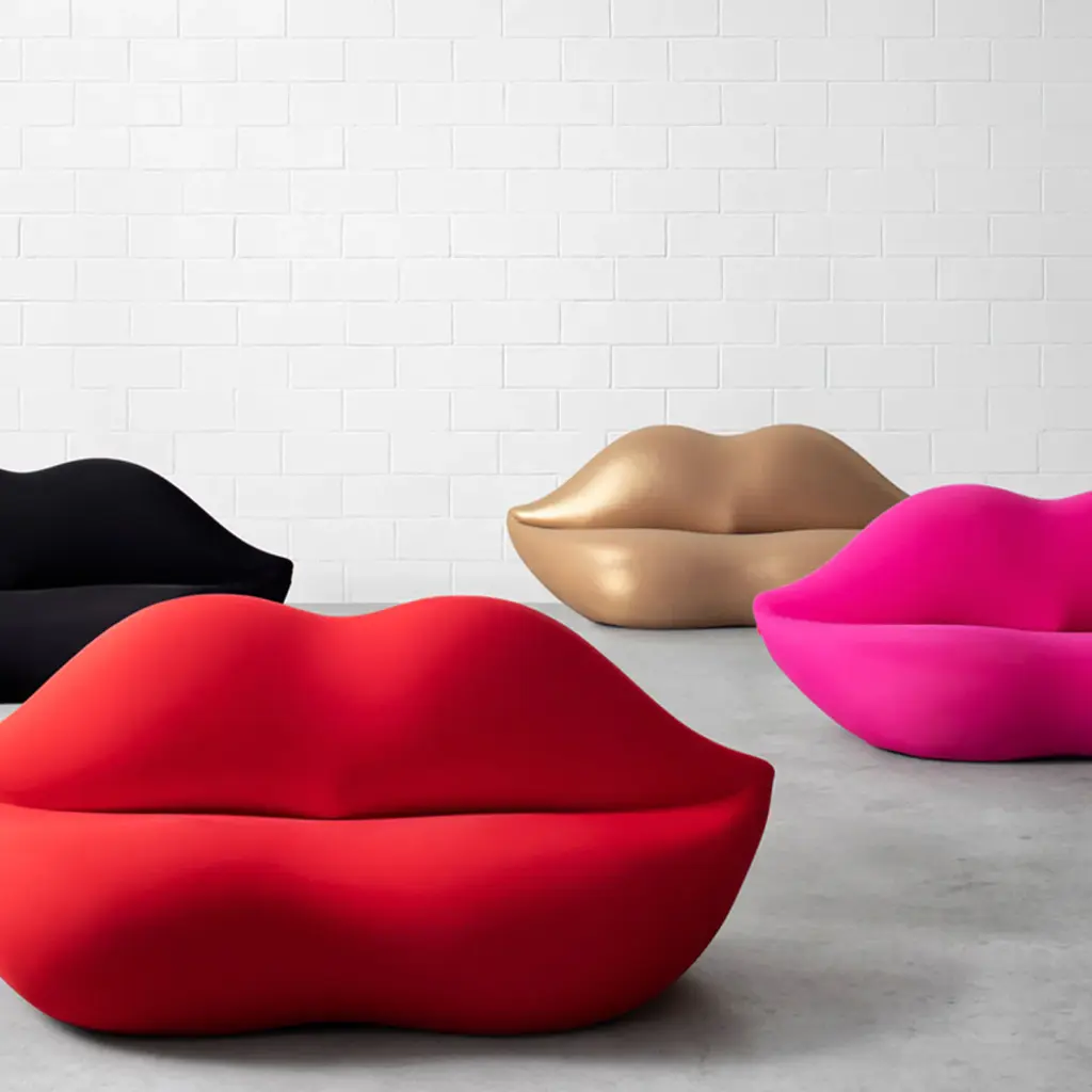 Couch in soft polyurethane upholstered with fabric. Pop DNA, a sensual and provocative soul, feminine and elegant aspect. Bocca is among the most sought-after, loved, and imitated products of home furniture. Since 2008 Bocca comes in two new versions: Dark Lady e Pink Lady. The first - rebellious, all black and with an oversize piercing - is the transgressive interpretation, with a marked gothic inclination. Voluptuous and of great impact, Dark Lady shows its rock spirit.