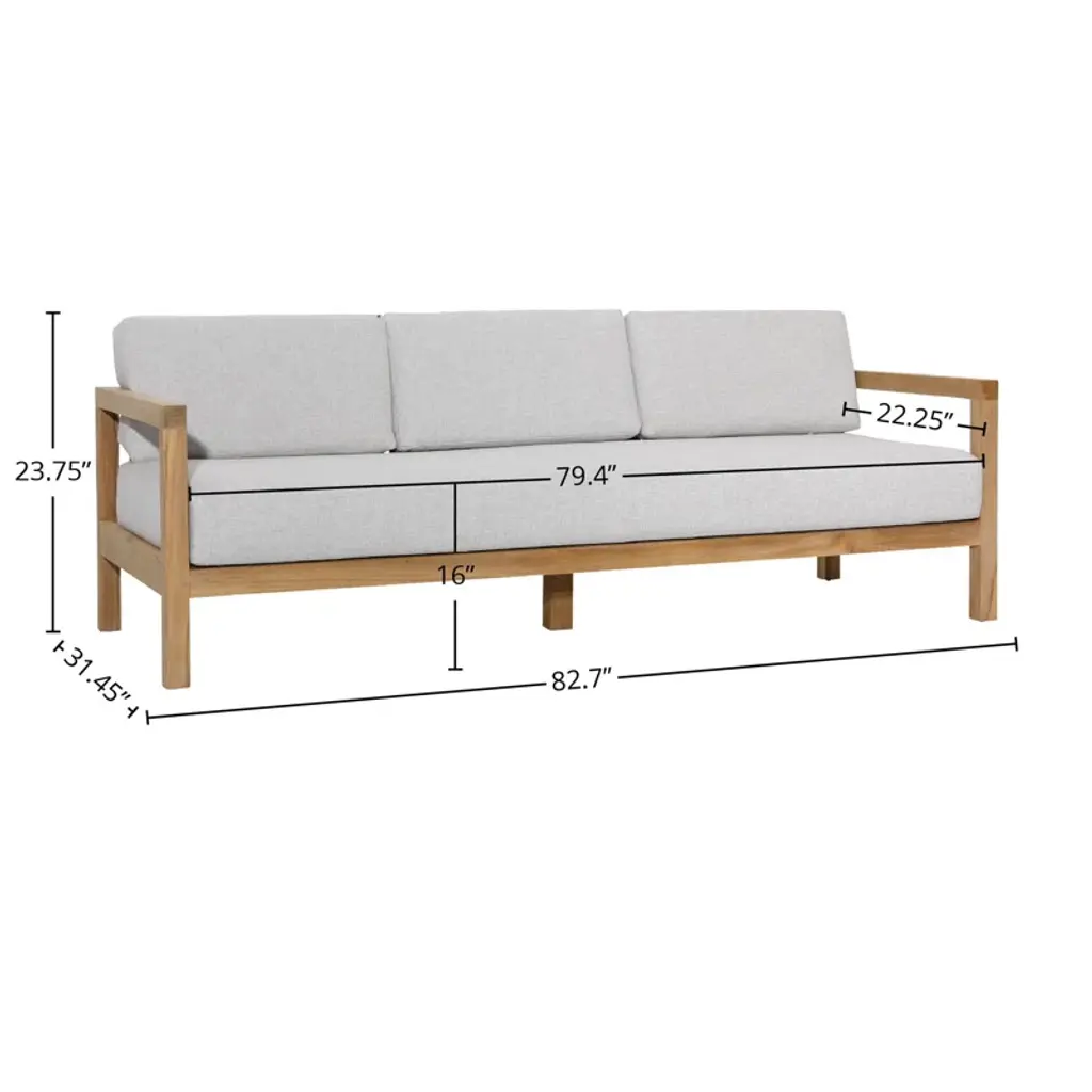The Boe 82" Outdoor Patio Sofa is perfect for outdoor relaxation. Made from weather-resistant solution-dyed acrylic upholstery and solid teak wood, this sofa ensures longevity in outdoor environments. Its light grey tone adds a neutral, contemporary look, while the polyurethane foam cushions provide comfortable support. The sofa's clean lines and sturdy materials make it ideal for patios, decks, or garden seating areas, offering both style and functionality for outdoor living.