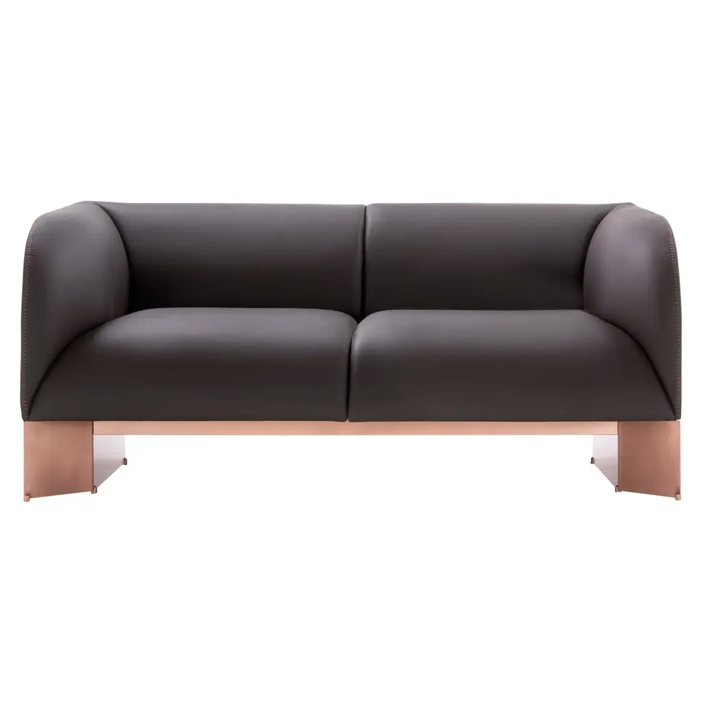 Clean lines and harmonious curves outlining plump volumes describe the design of this stunning contemporary sofa. Upholstered in a glamorous red fabric (Luna cat. Select 307), it features a simple tubular metal frame lacquered in black (RAL 9017) that welcomes a generous seat enveloped by a back with subtly curved sides that state its welcoming character.