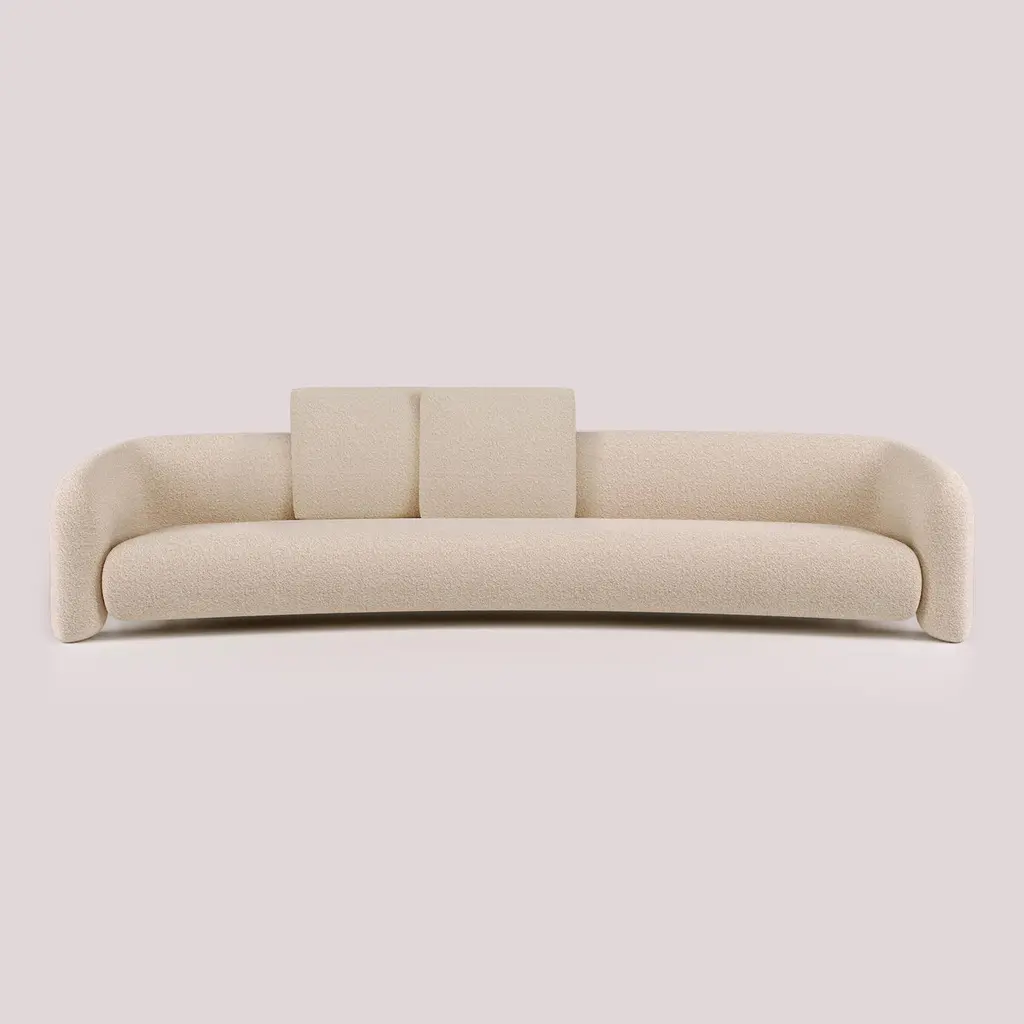 With its contemporary design, this version of the Bold Sofa Curved introduces new dimensions of comfort, offering expanded space for ultimate relaxation. The fluid lines and organic curves, combined with its open arms feature, further amplify the sense of spaciousness. Crafted from decades of refined design expertise, this isn't just a piece of furniture; it's a transformative experience that invites you to embrace the essence of luxurious living.Available in a variety of customizable options, including a range of exquisite upholstery choices and finishes, The Bold Curved Sofa allows you to tailor it to your unique style.Two decorative cushions, each sized 65x65 cm, are included.Fabric: Karakorum 003 by Dedar