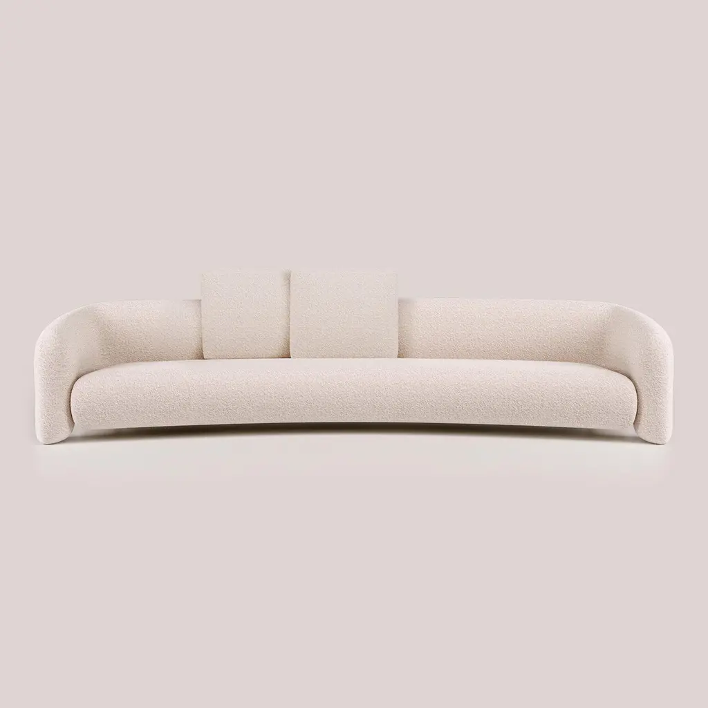 With its contemporary design, this version of the Bold Sofa Curved introduces new dimensions of comfort, offering expanded space for ultimate relaxation. The fluid lines and organic curves, combined with its open arms feature, further amplify the sense of spaciousness. Crafted from decades of refined design expertise, this isn't just a piece of furniture; it's a transformative experience that invites you to embrace the essence of luxurious living.Available in a variety of customizable options, including a range of exquisite upholstery choices and finishes, The Bold Dining Chair allows you to tailor it to your unique style.Two decorative cushions, each sized 65x65 cm, are included.Structure: FSC multilayer wood and FSC wood fibre, black painted epoxy iron feetPadding: differentiated-density polyurethane foamUpholstery: Non removable