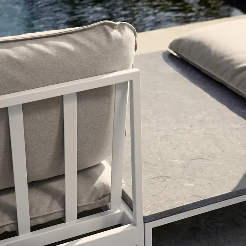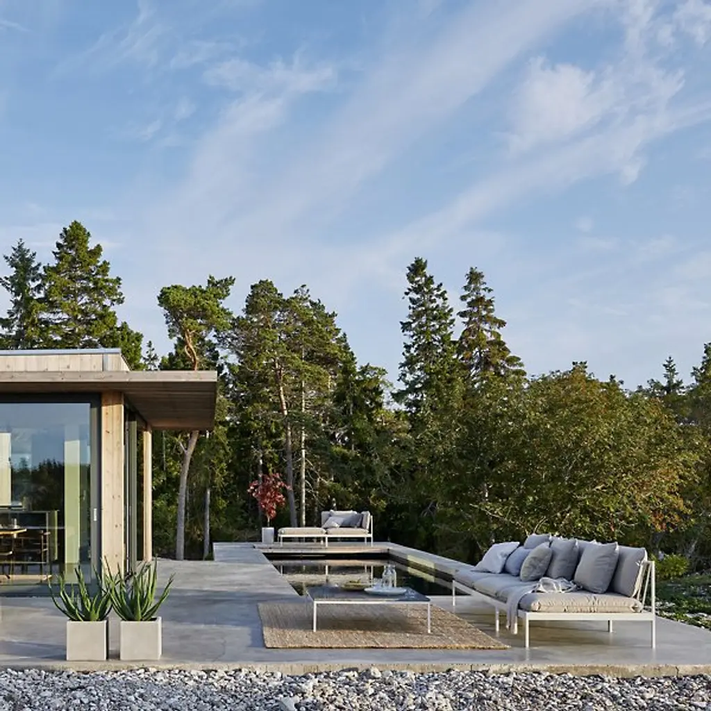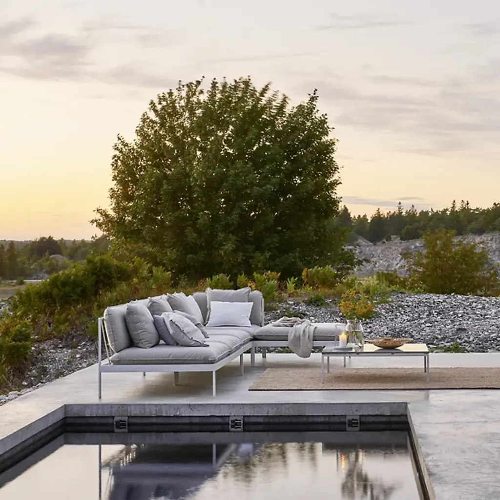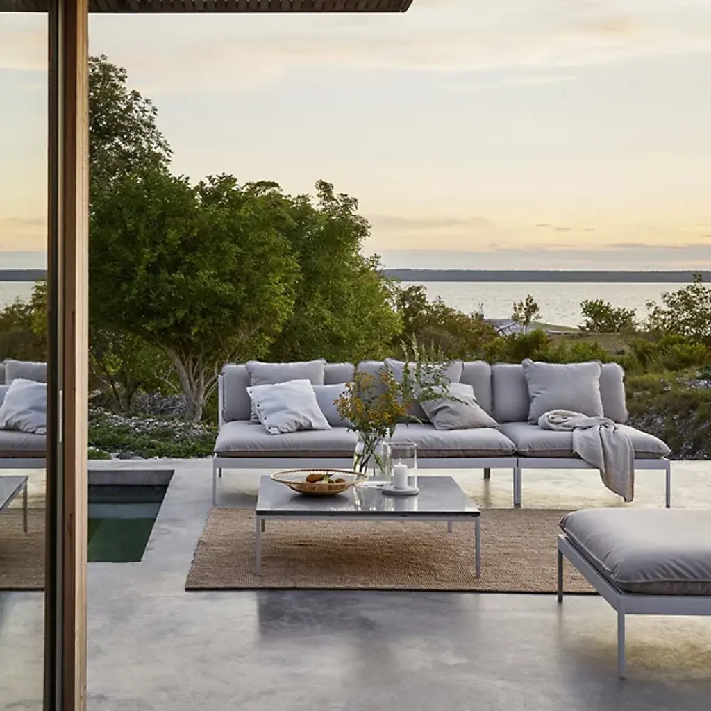 Crafted to withstand all season's of the year, the Bönan Outdoor Lounge Sofa is the perfect outdoor sofa for any outdoor setting. This stunning design is part of a modular sofa system where you can configure and arrange with other Bönan modular pieces. Strong and sturdy, the modular sofa is made of Sunbrella outdoor fabric cushions and a frame constructed of aluminum. Available in a variety of colors and finishes. For more Bönan designs, visit the Bönan Collection.