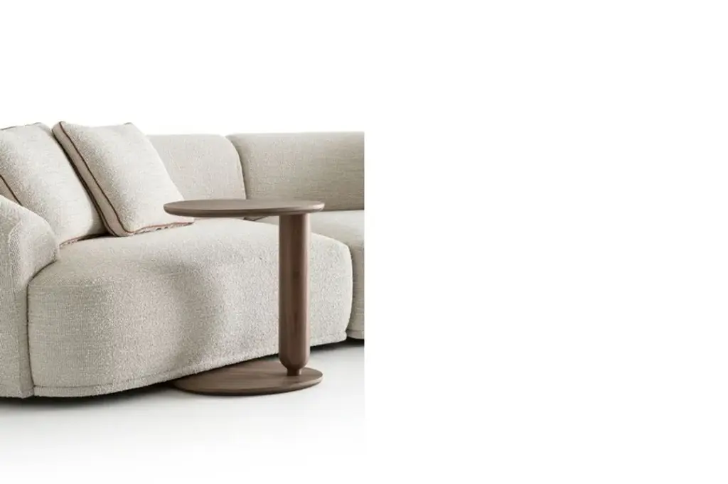 BOND is a curved modular sofa.Maximum design freedom, zero compromises. Bond is a modular sofa with curved, fluid lines—designed for those who seek softness, lightness, and tailored versatility.Its modular structure adapts elegantly to any setting, from cozy living rooms to spacious lounges, offering endless composition possibilities.A true expression of Italian craftsmanship, Bond is more than just a sofa: it's a style choice that combines comfort, character, and bespoke solutions.Modular sofa with a solid wood frame, padded with elastic webbing, foam, and protective velveteen. Fully upholstered in fabric, non-removable. Legs in lacquered solid wood.