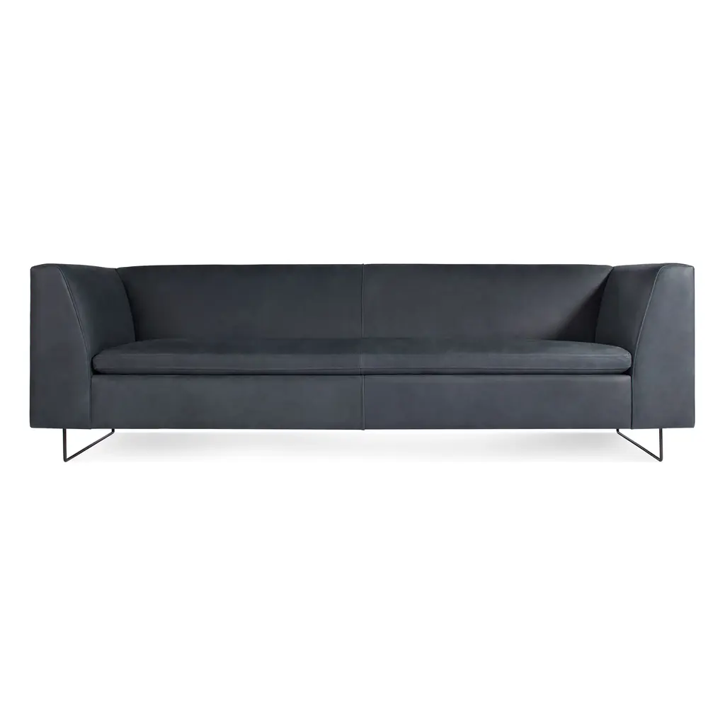 The Bonnie Leather Sofa from Blu Dot is a modern masterpiece with a timeless design. Upholstered in supple, luxurious leather, this sofa is crafted with a boxy silhouette, slender steel loop legs, and a single seat cushion for streamlined comfort. Its impeccable tailoring and neutral color options ensure that this classic sofa will remain an elegant part of your home for years. Highlights