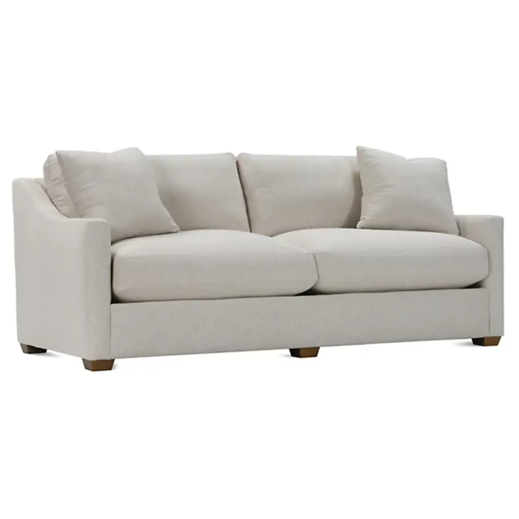 The Bradford Sofa from Rowe Furniture features removable legs and combines high-density foam cores with convoluted cushioning for remarkable comfort. Each seat features a channeled fabric cover filled with fine denier fiber, preventing shifting while maintaining consistent support. The cushioning system balances plushness with resilience through its foam and contoured caps. Made with environmentally conscious materials, this sofa encourages responsible manufacturing practices. Its careful construction focuses on long-term durability, requiring minimal maintenance beyond routine care.