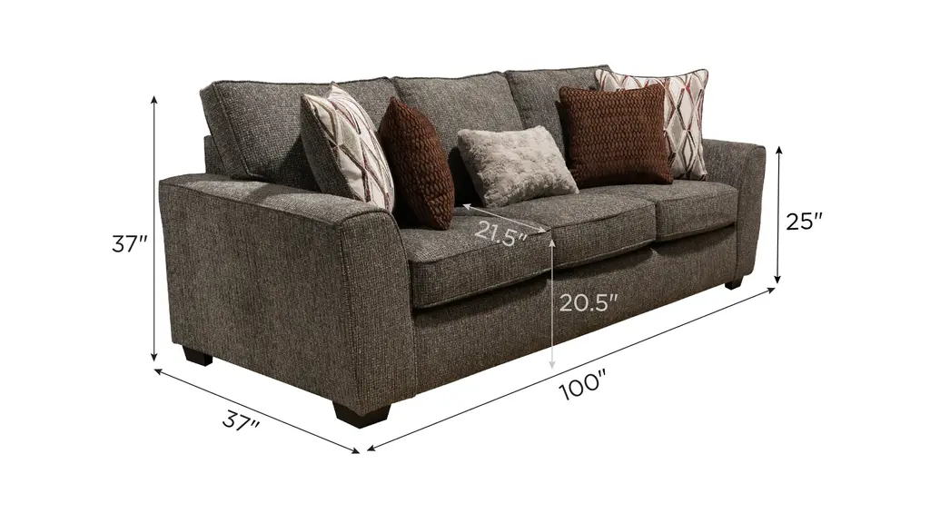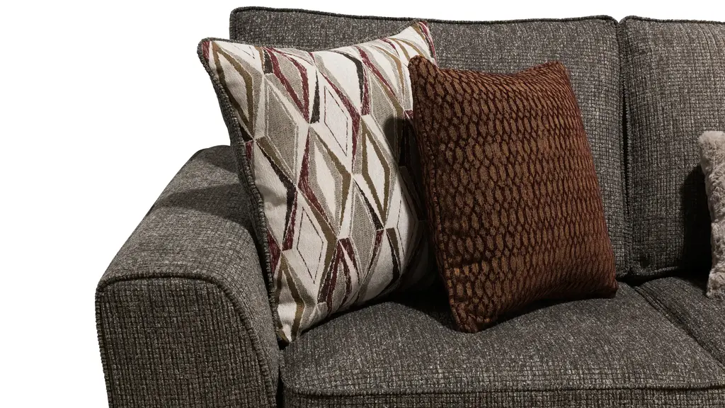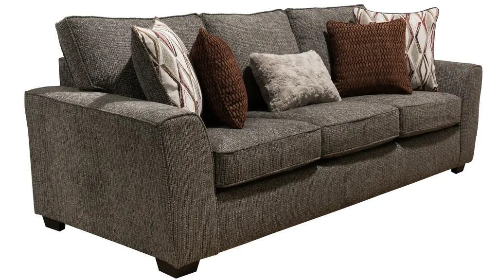 Choose the contemporary and casual Bray sofa as a striking addition to your living space. The menswear-inspired textures and colors of its upholstery and accent pillows bring a transitional vibe to sleek styling that features subtle geometric patterns, wide flare arms, and low block feet. The Bray is sure to be a family favorite for years to come.