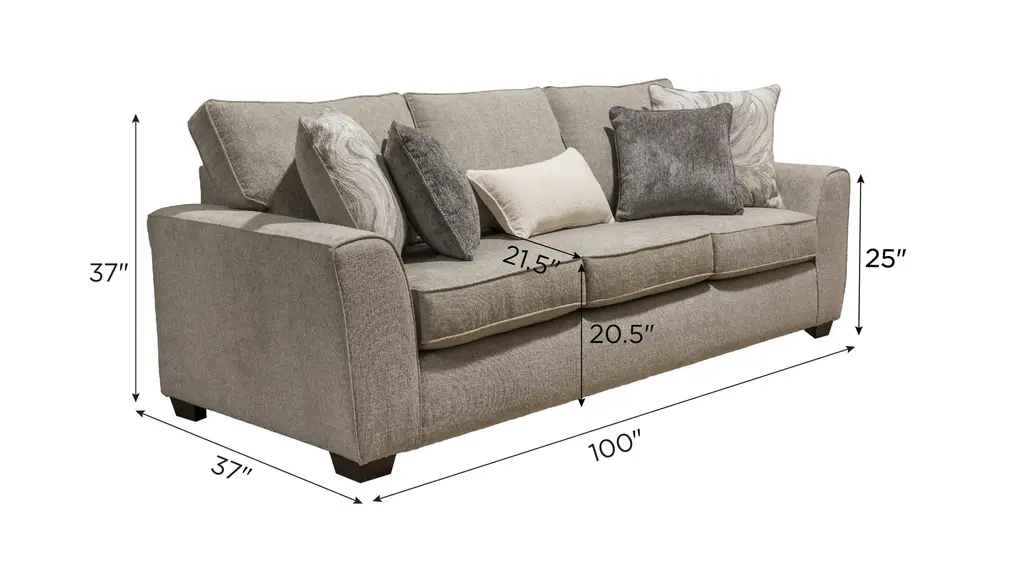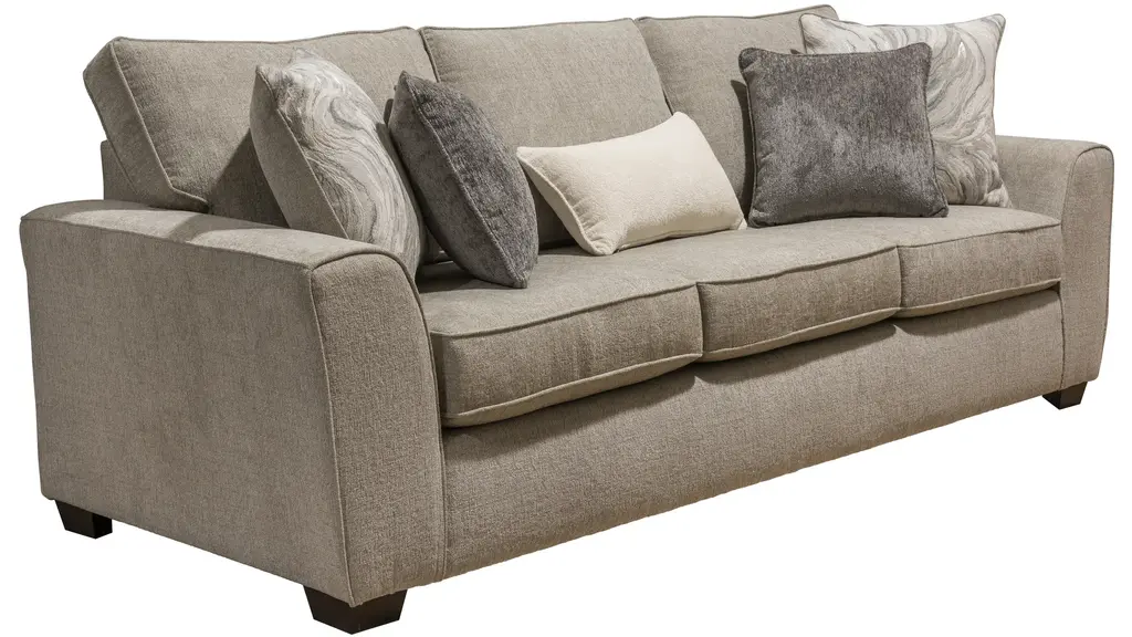 Choose the contemporary and casual Bray sofa as a striking addition to your living space. The menswear-inspired textures and colors of its upholstery and accent pillows bring a transitional vibe to sleek styling that features subtle geometric patterns, wide flare arms, and low block feet. The Bray is sure to be a family favorite for years to come.