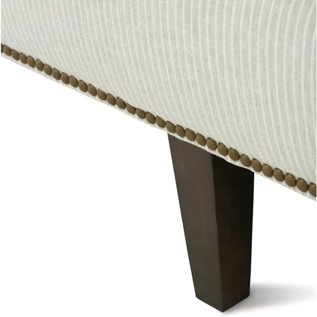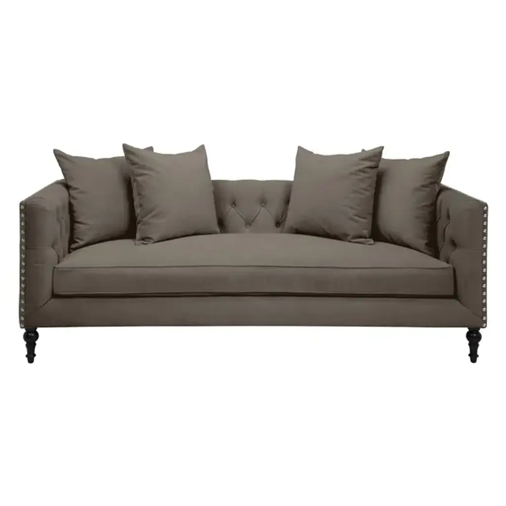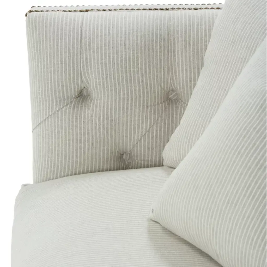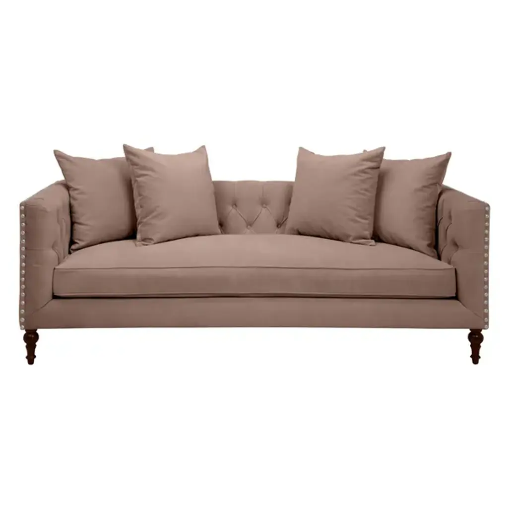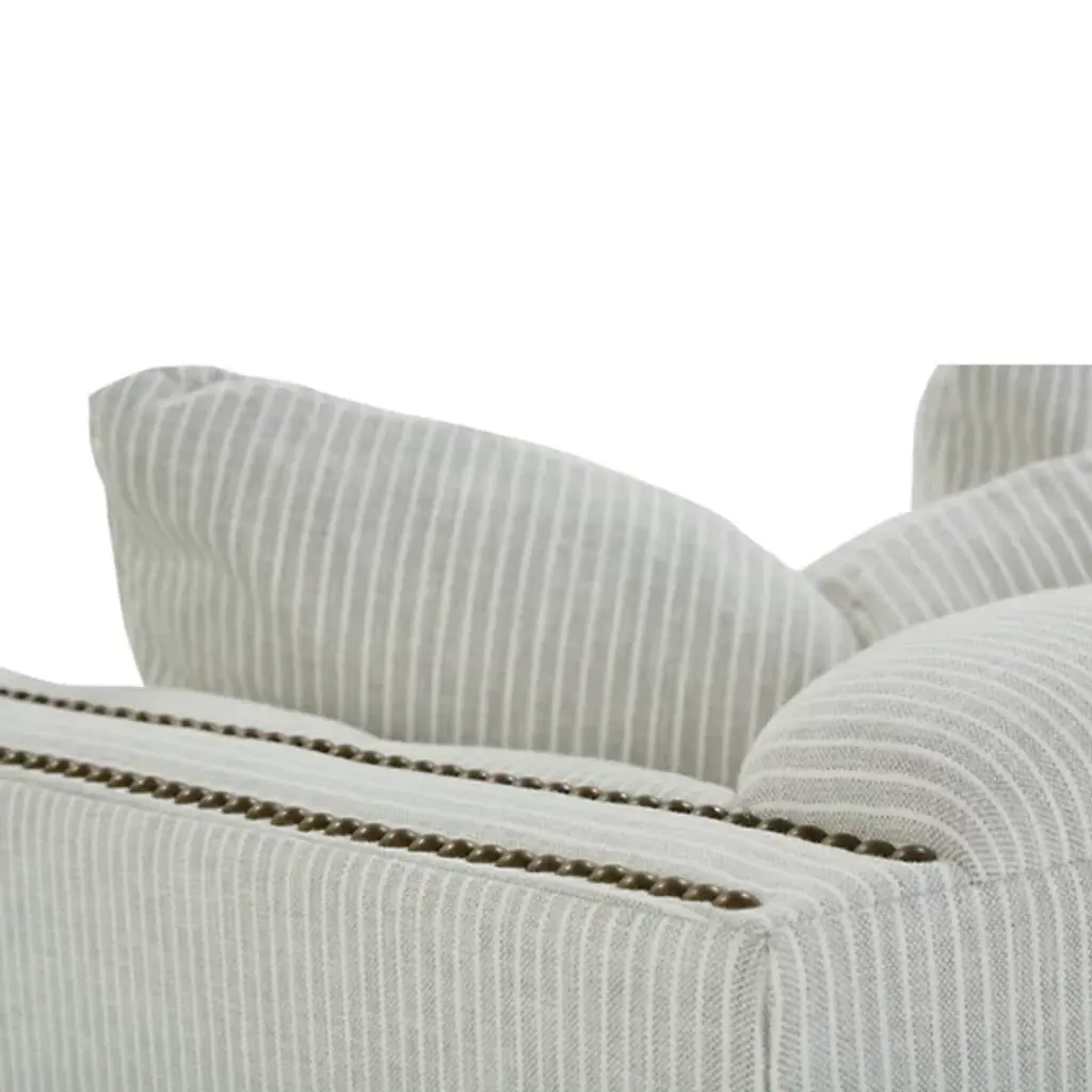 The Brette Sofa from Rowe Furniture stands out with its distinctive tuxedo-style frame accentuated by diamond tufting and nailhead trim. The high-resiliency foam cores ensure sustainable comfort while being environmentally responsible, containing no PBDEs or flame retardants. The cloud cushion design requires regular maintenance through fluffing and rotation to preserve its appealing shape. The straight lines of the frame create a structured foundation that works in both formal and casual settings.