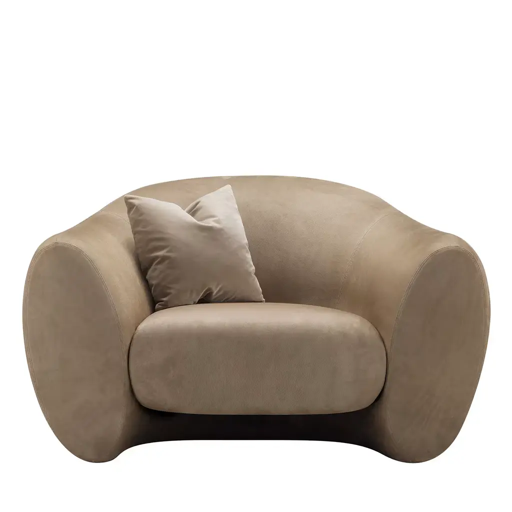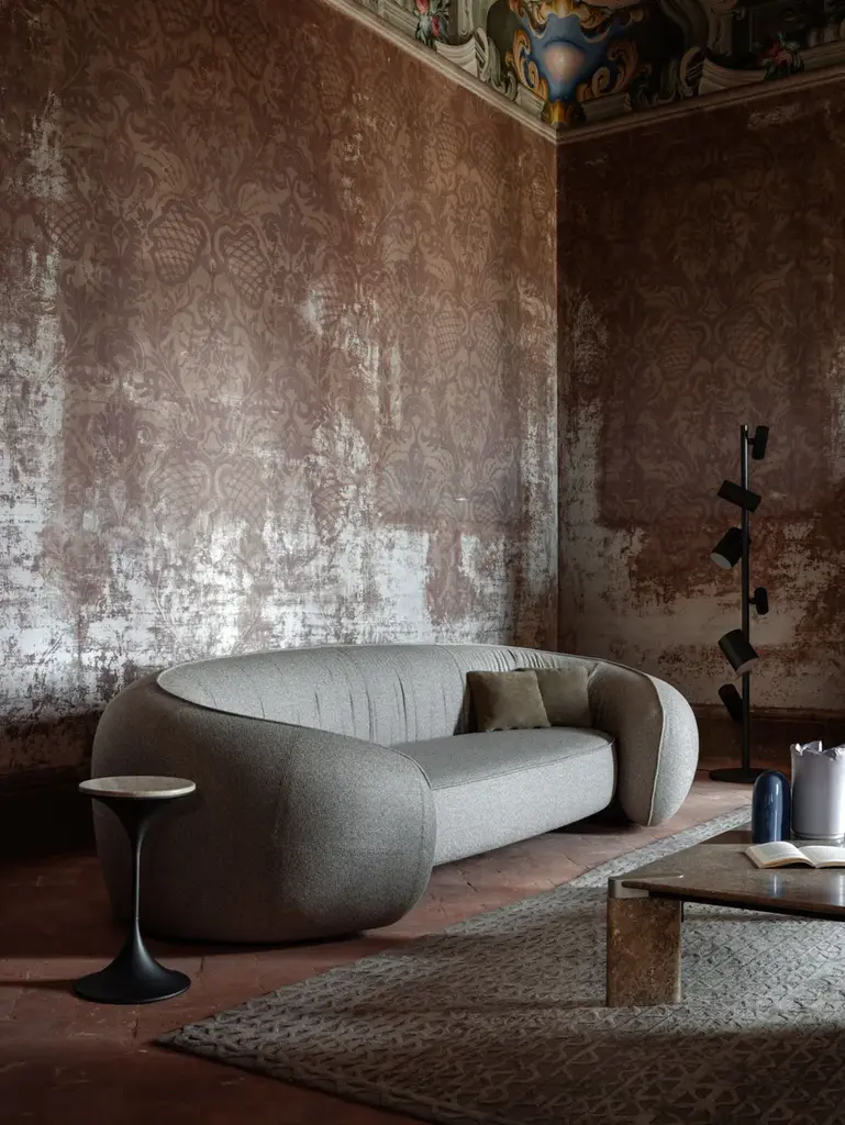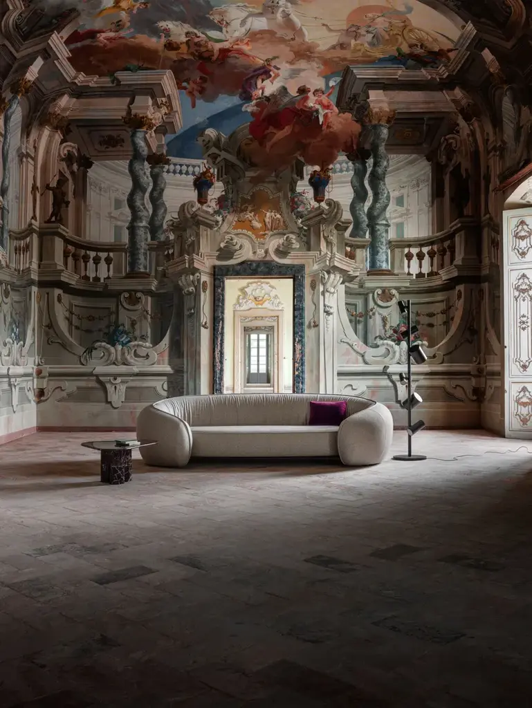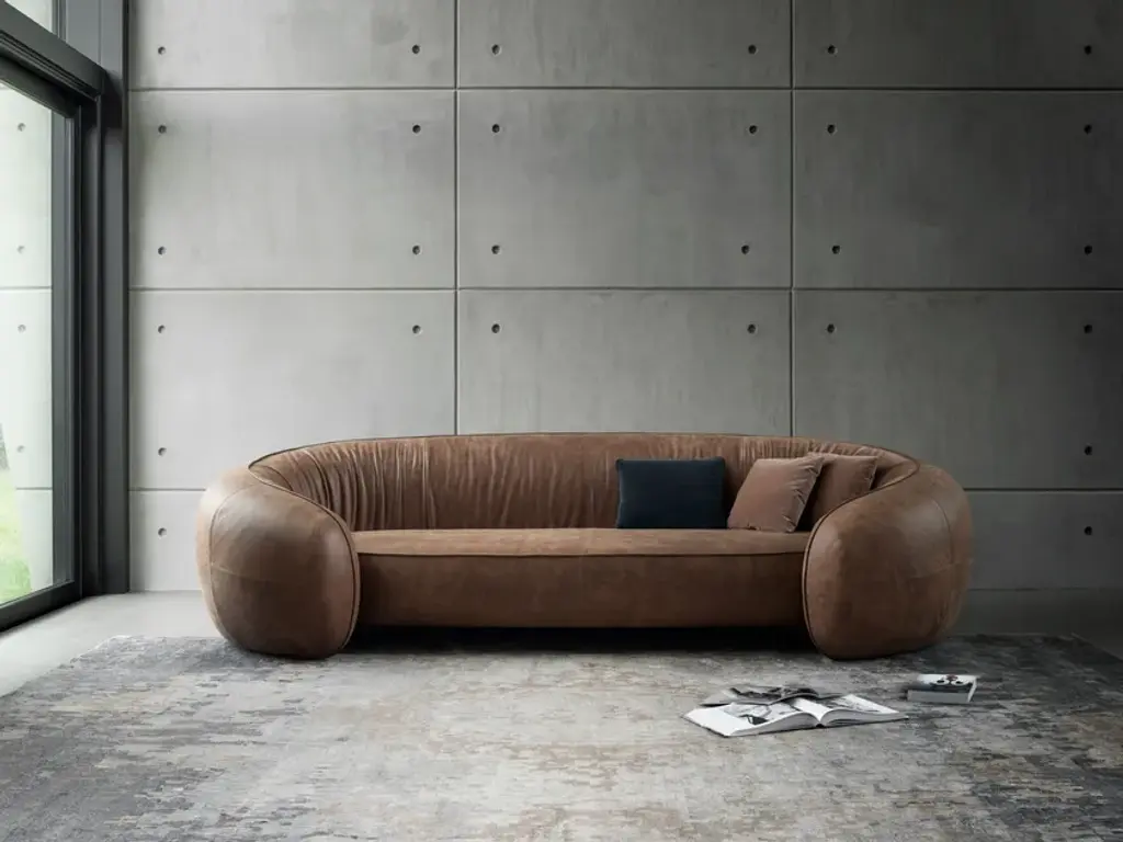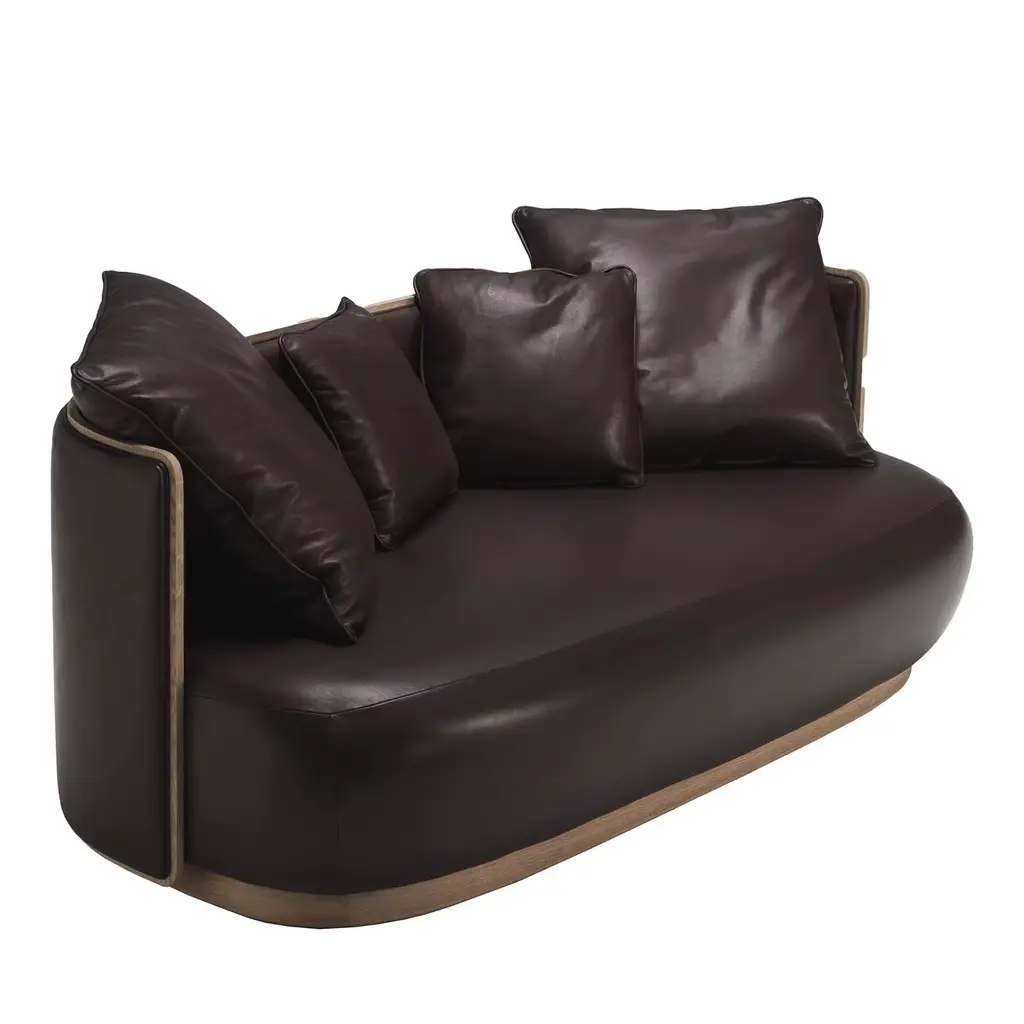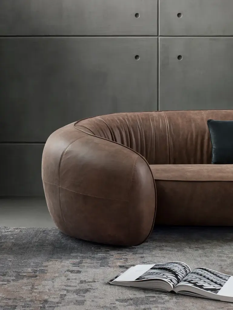 Bridge is a large sofa characterized by a generous shaped backrest that wraps the elliptical seat suspended between its powerful arms. An iconic object of great expressive power capable of catalyzing the surrounding space.