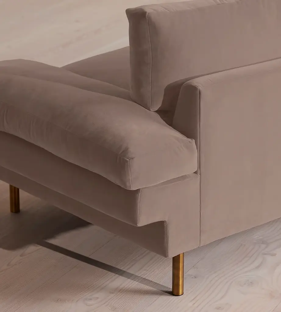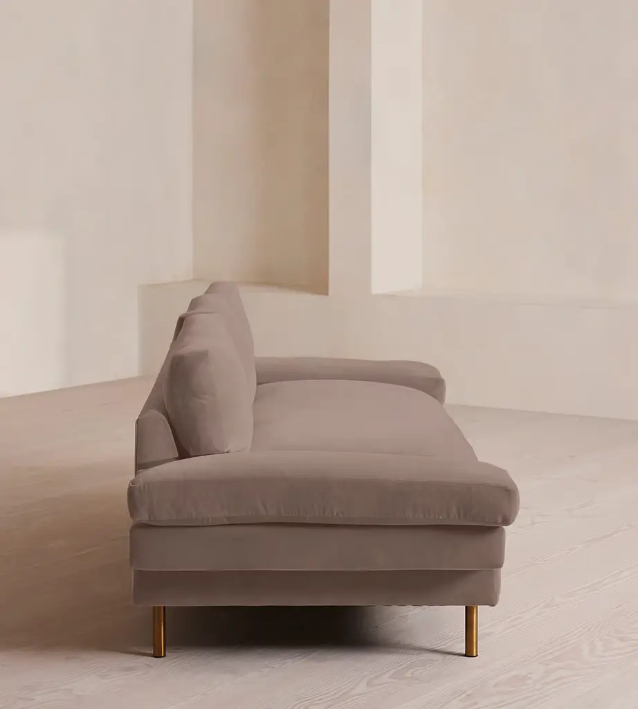 With a low, laidback profile, our Bristol sofa is made for moments of rest and relaxation. Upholstered in rich velvet, it features a bench seat cushion, feather-wrapped back cushions and padded arms when it's time to put your feet up. Finished with cast brass legs, add this three-seater style into your own living room to recreate the laidback aesthetic of 180 House on London's Strand.