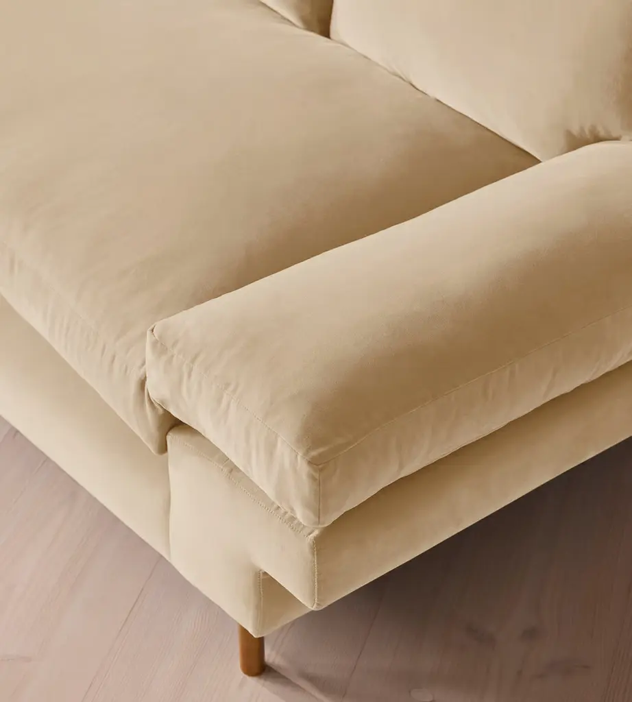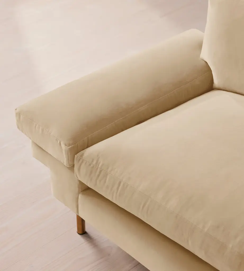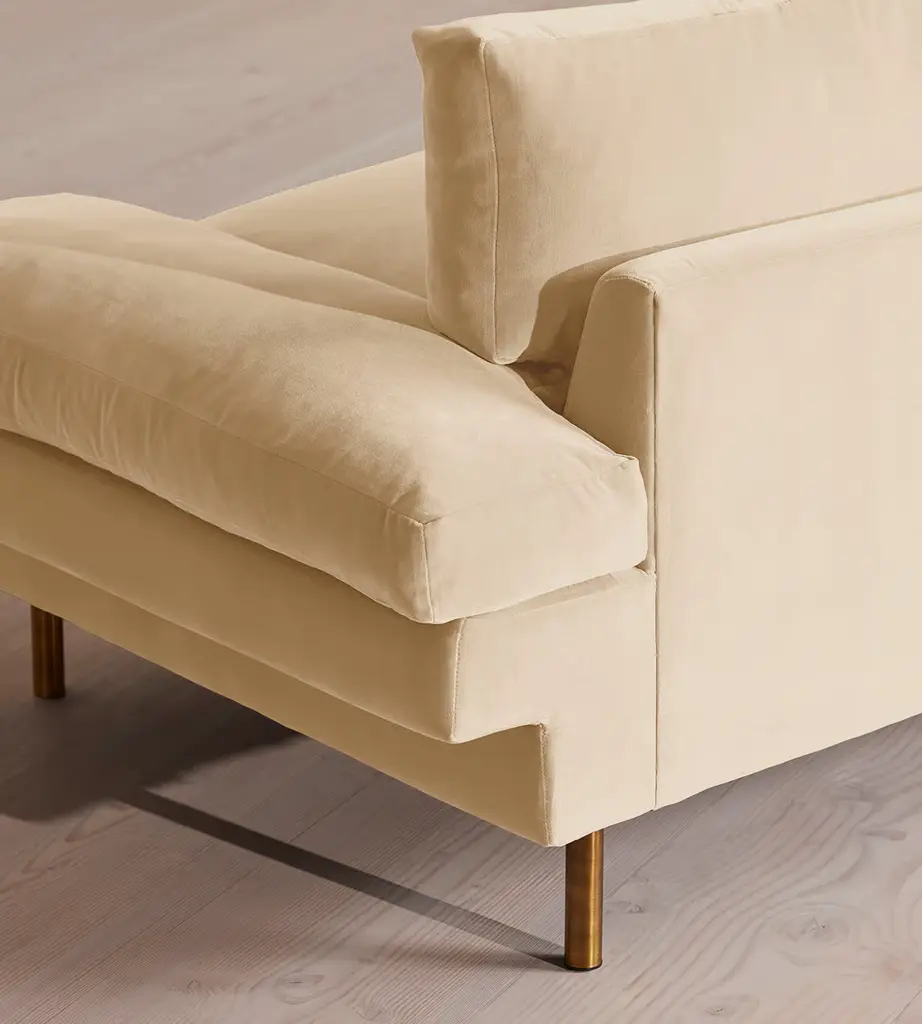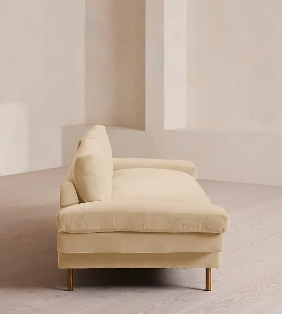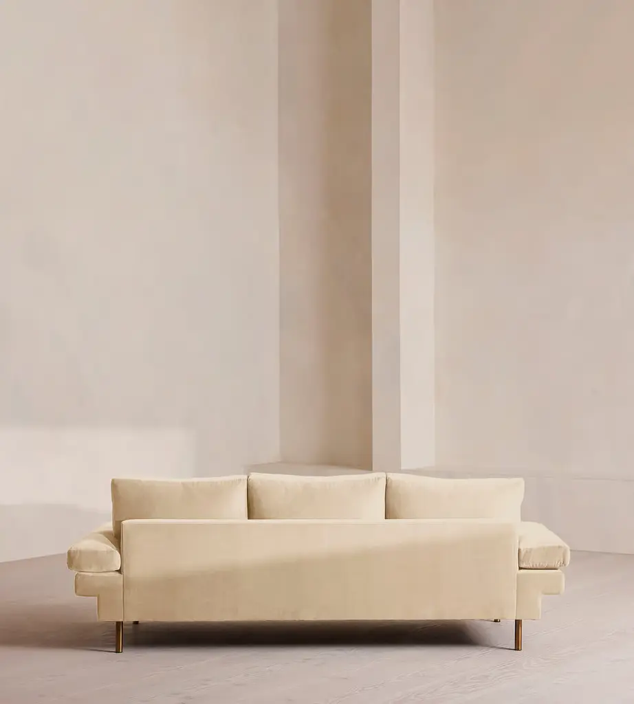 With a low, laidback profile, our Bristol sofa is made for moments of rest and relaxation. Upholstered in rich velvet, it features a bench seat cushion, feather-wrapped back cushions and padded arms when it's time to put your feet up. Finished with cast brass legs, add this three-seater style into your own living room to recreate the laidback aesthetic of 180 House on London's Strand.