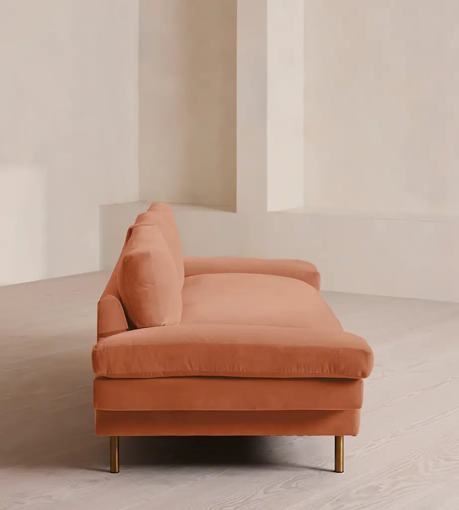 With a low, laidback profile, our Bristol sofa is made for moments of rest and relaxation. Upholstered in rich velvet, it features a bench seat cushion, feather-wrapped back cushions and padded arms when it's time to put your feet up. Finished with cast brass legs, add this three-seater style into your own living room to recreate the laid back aesthetic of 180 House on London's Strand.