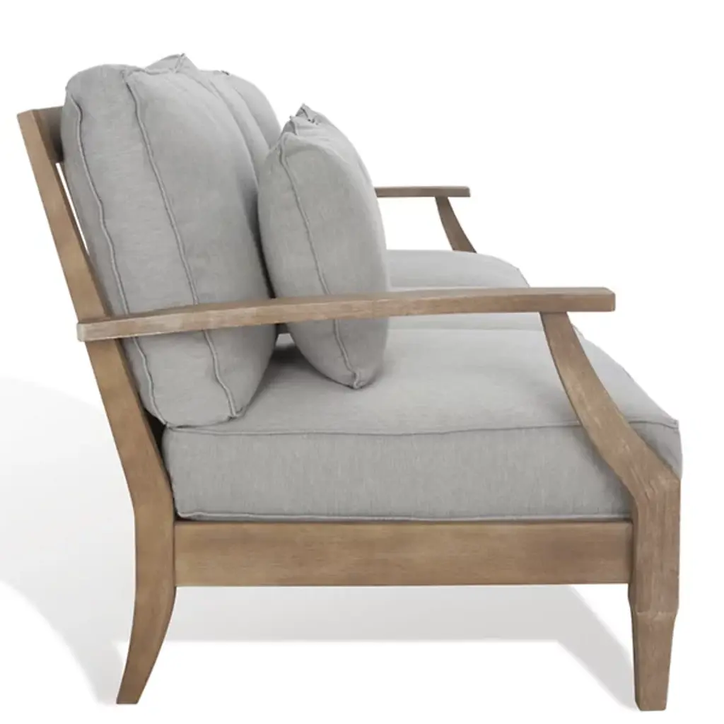 The Brodrick Outdoor Patio Sofa from Alder & Ore maximizes comfort with its deep-set design and graduated backrest. Eucalyptus wood frames provide natural weather resistance while developing rich character over time. The all-weather cushions maintain their shape and support through daily use, creating an outdoor haven for conversation and relaxation. Metal reinforcements ensure lasting stability, while the thoughtful proportions accommodate both intimate gatherings and larger social occasions. This sofa brings resort-style comfort to your personal outdoor space.