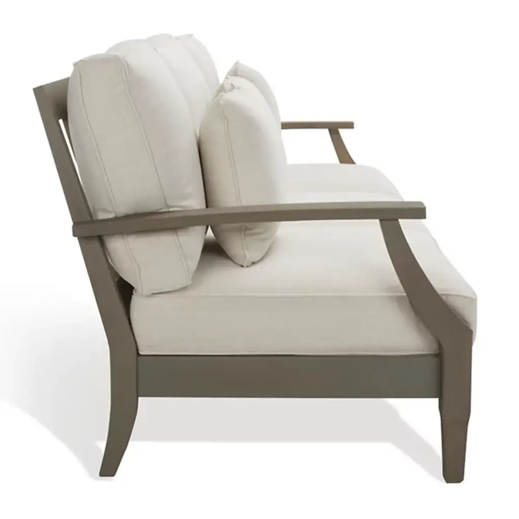 The Brodrick Outdoor Patio Sofa from Alder & Ore maximizes comfort with its deep-set design and graduated backrest. Eucalyptus wood frames provide natural weather resistance while developing rich character over time. The all-weather cushions maintain their shape and support through daily use, creating an outdoor haven for conversation and relaxation. Metal reinforcements ensure lasting stability, while the thoughtful proportions accommodate both intimate gatherings and larger social occasions. This sofa brings resort-style comfort to your personal outdoor space.