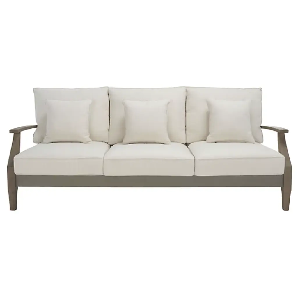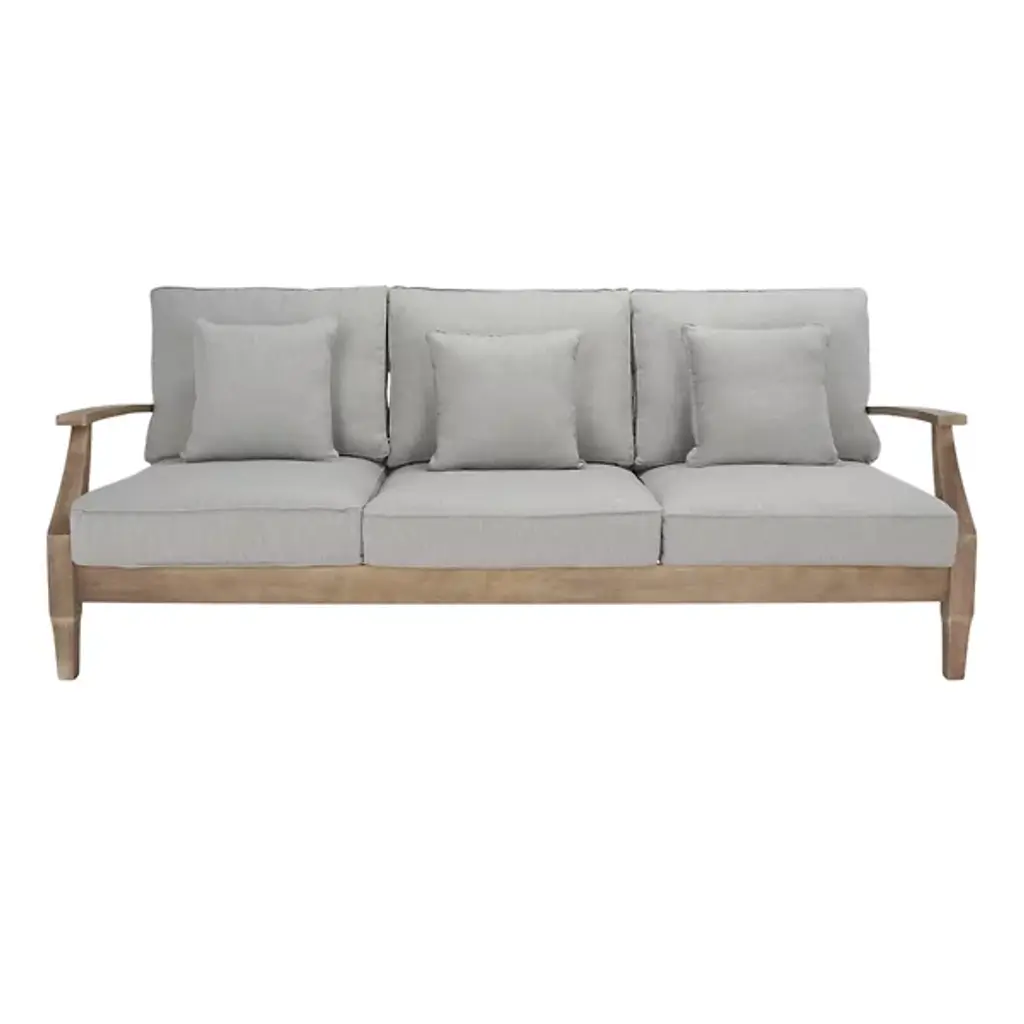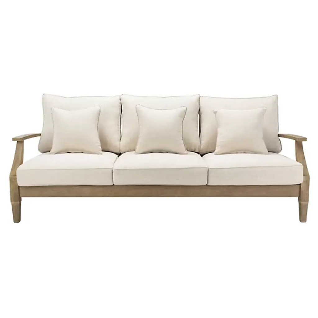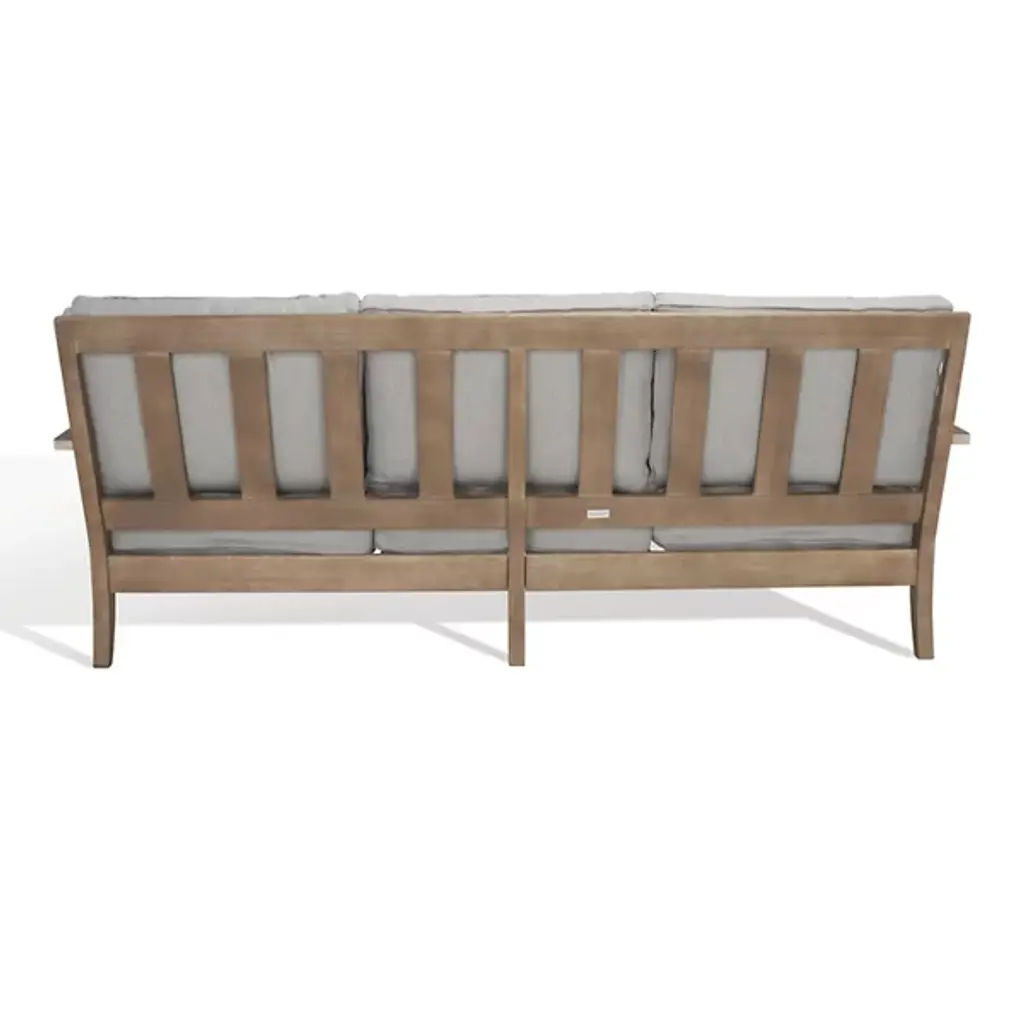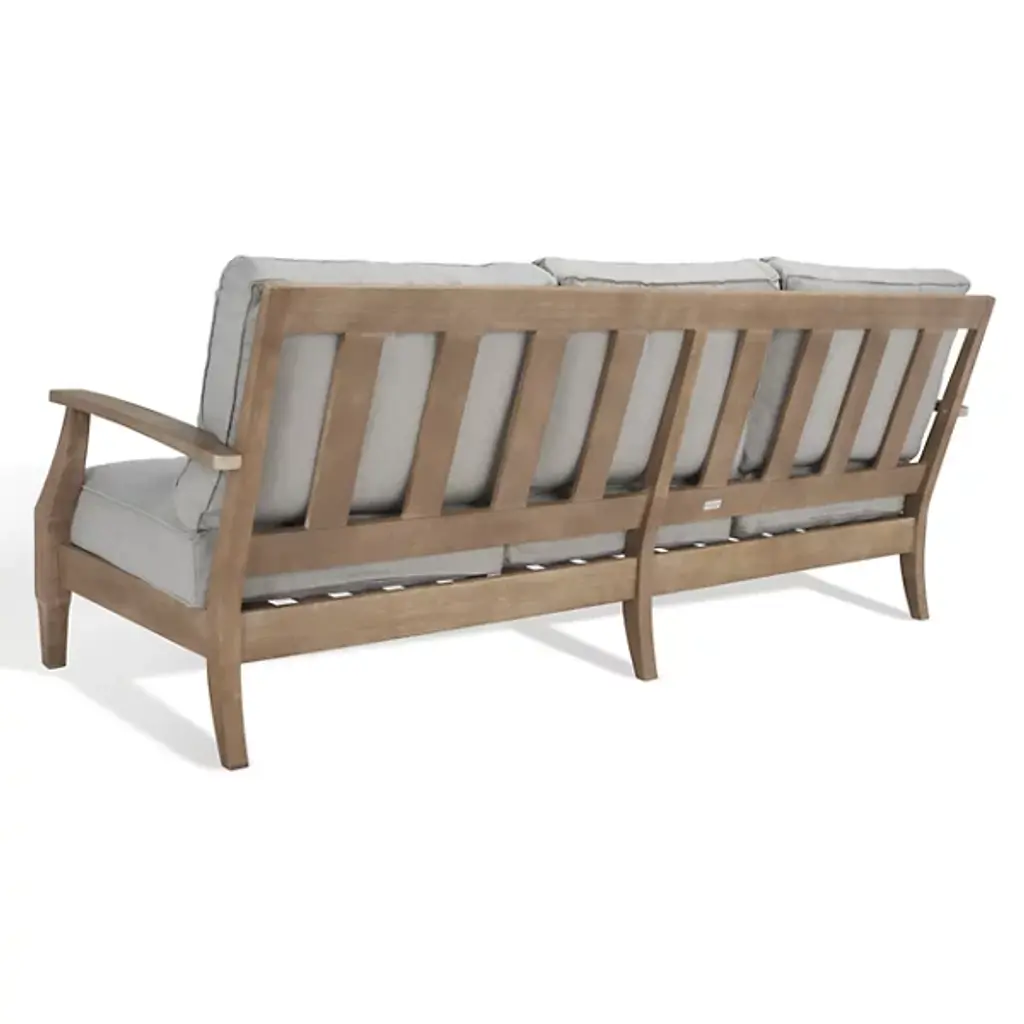 The Brodrick Outdoor Patio Sofa from Alder & Ore maximizes comfort with its deep-set design and graduated backrest. Eucalyptus wood frames provide natural weather resistance while developing rich character over time. The all-weather cushions maintain their shape and support through daily use, creating an outdoor haven for conversation and relaxation. Metal reinforcements ensure lasting stability, while the thoughtful proportions accommodate both intimate gatherings and larger social occasions. This sofa brings resort-style comfort to your personal outdoor space.
