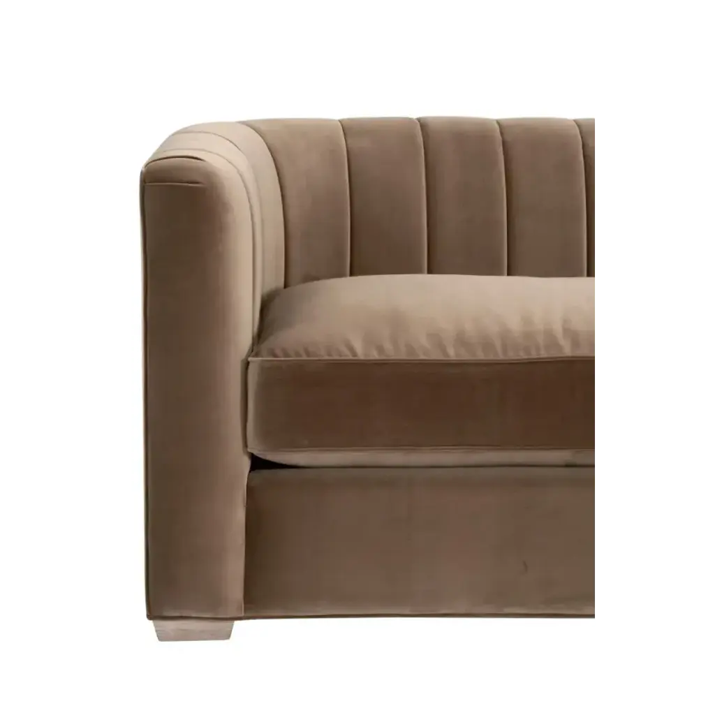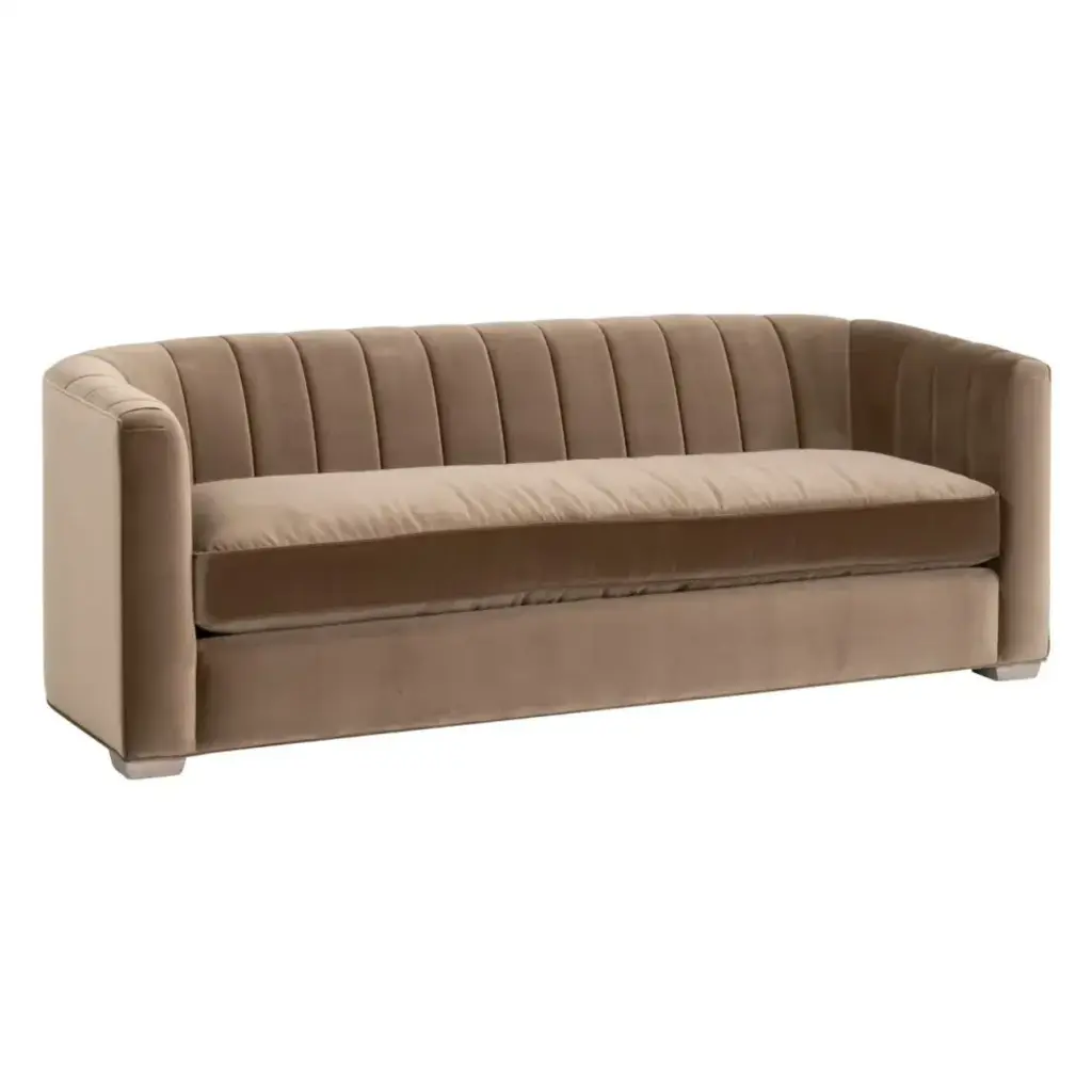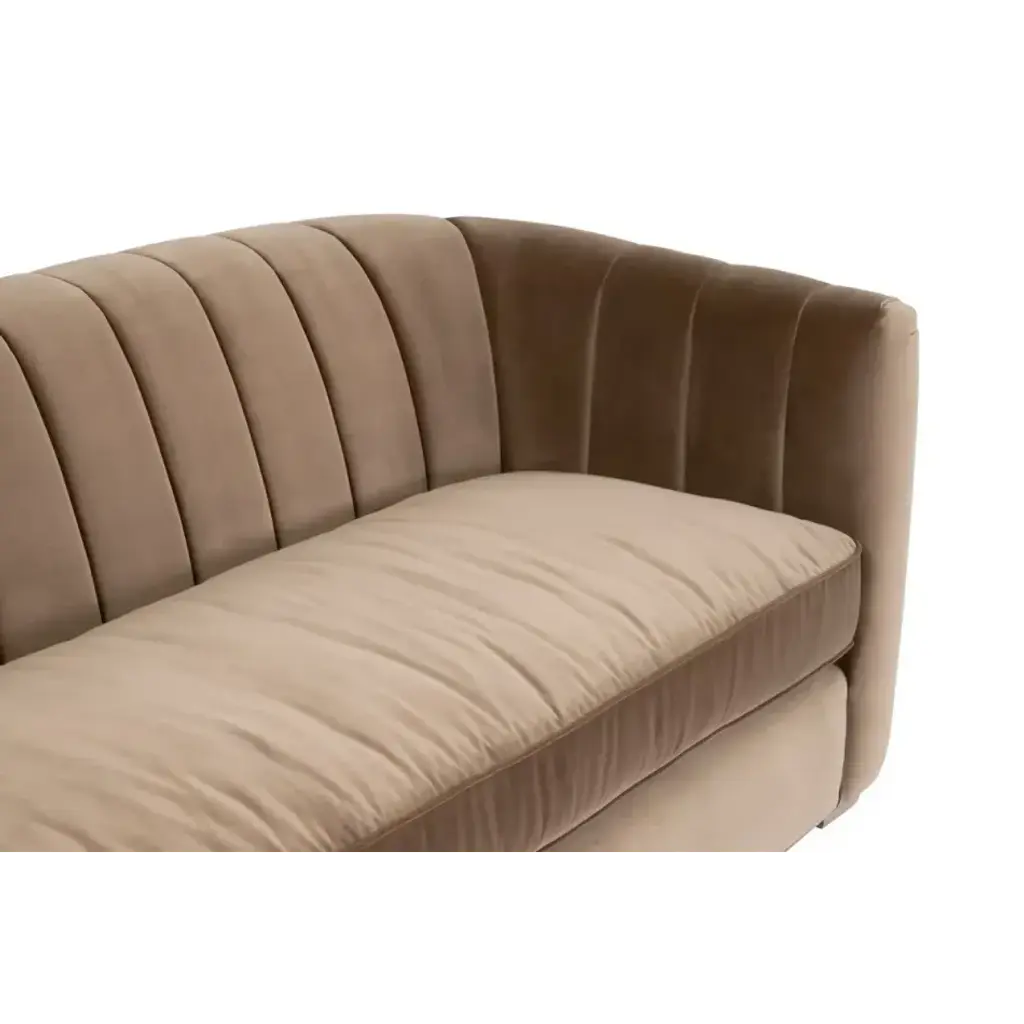 Bronx Caramel Velvet Natural Gray Oak Channel Back Sofa 87"