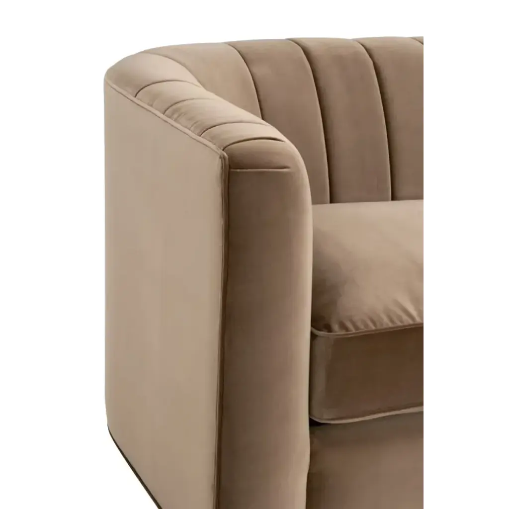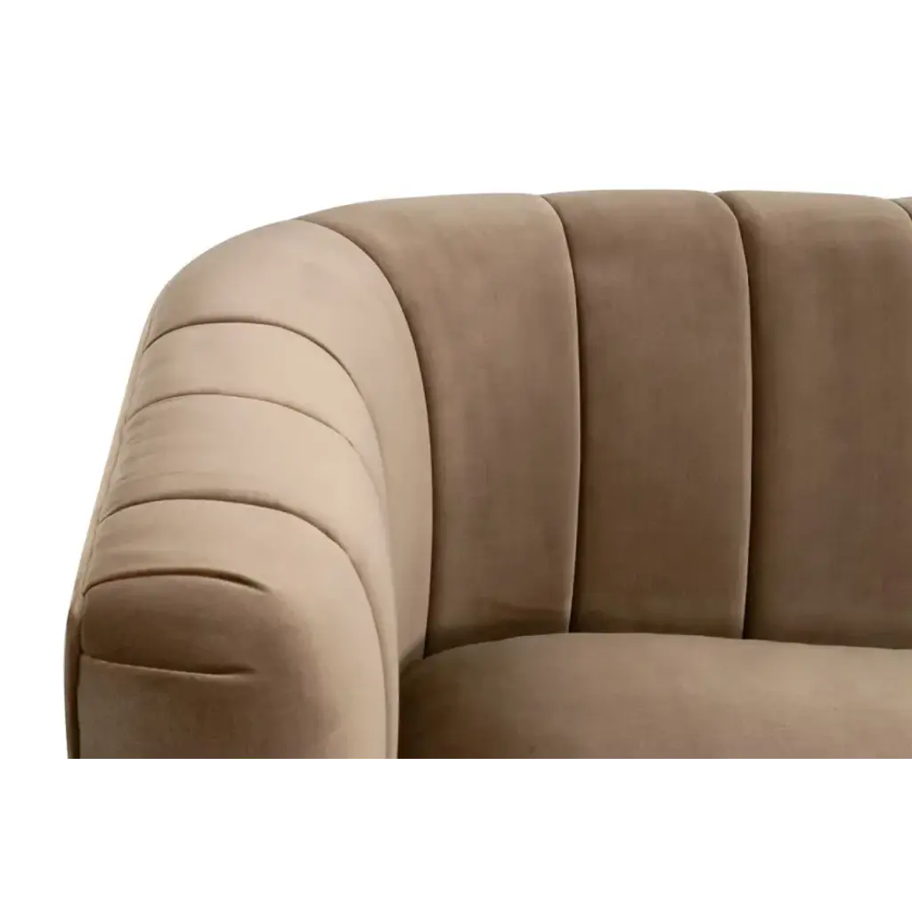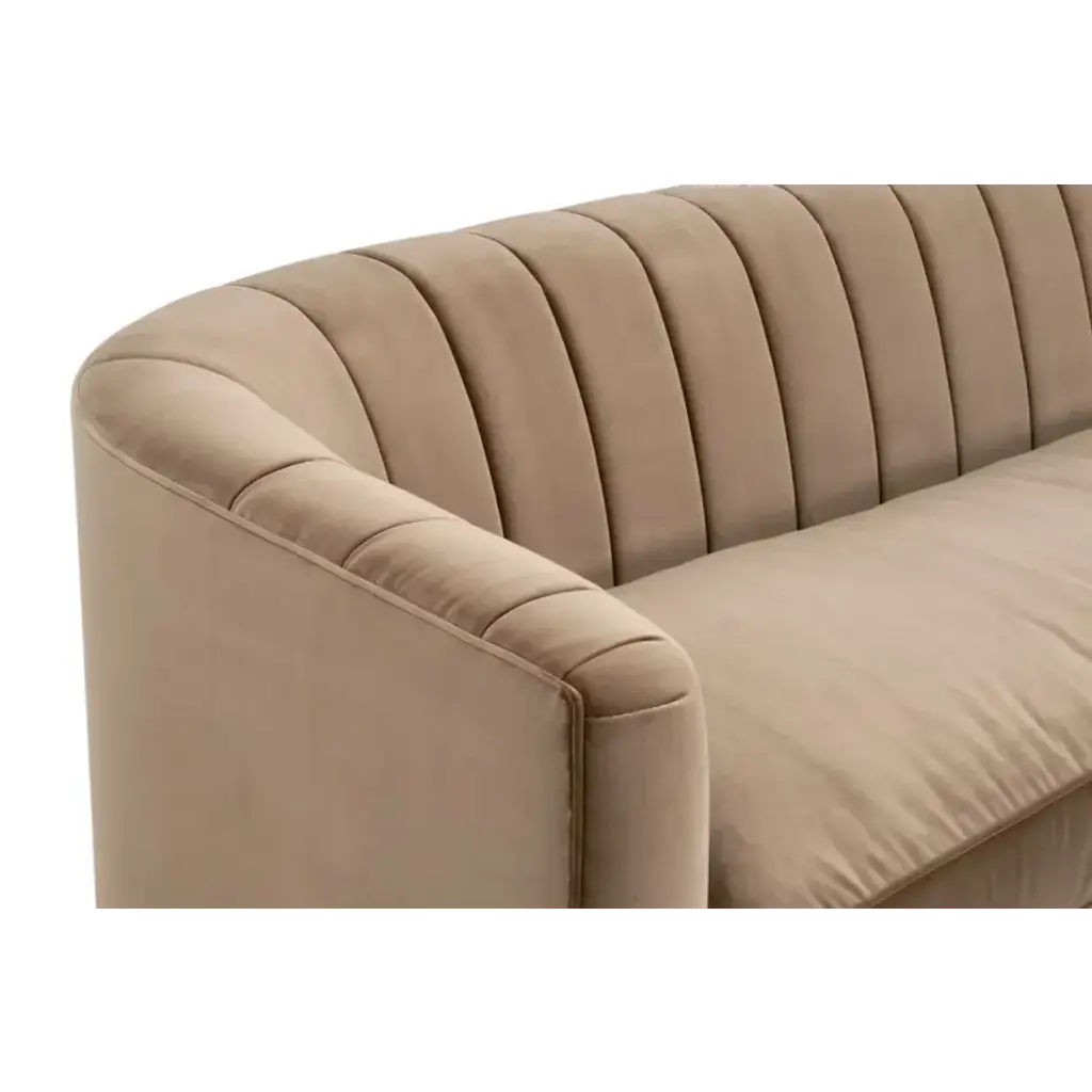Bronx Caramel Velvet Natural Gray Oak Channel Back Sofa 87"