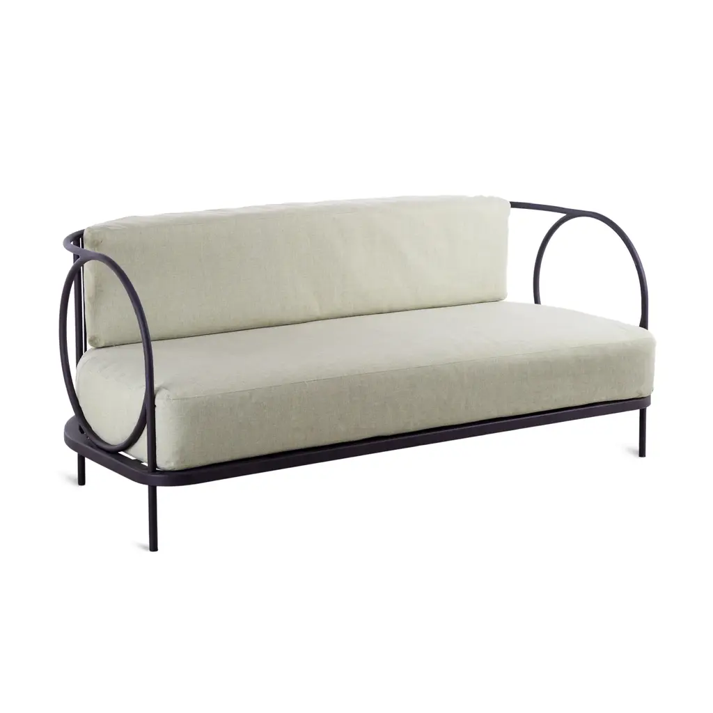 This bronze outdoor sofa, designed by Adam D. Tihany, blends contemporary design with skilled craftsmanship. Its circular motif adds a touch of elegance and structural purpose, making it both decorative and functional. Complete the look with matching armchairs, tables, and seats available in various shades. A timeless addition to any outdoor space.