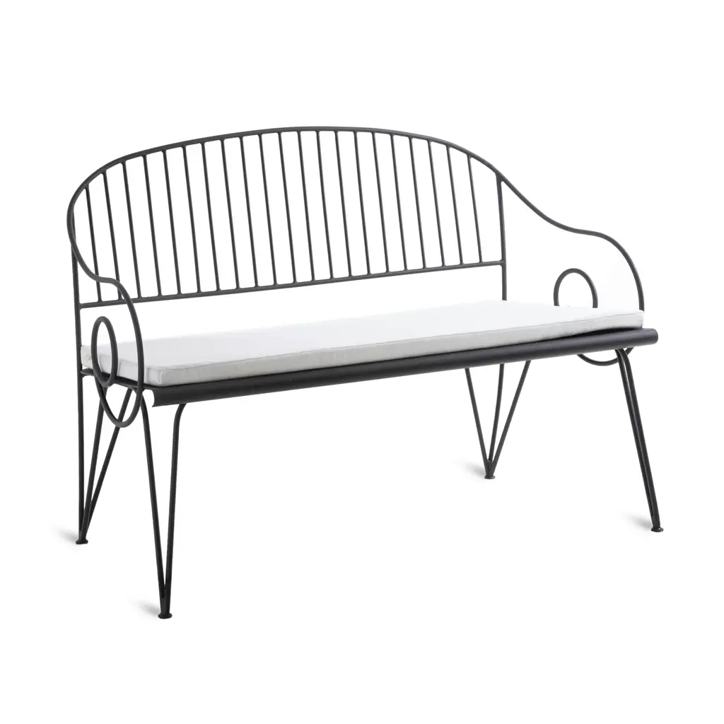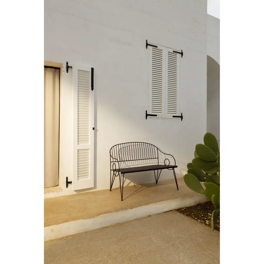 Handcrafted and designed by Adam D. Tihany, the Bronze Outdoor Sofa from Unopiu Ariete embodies timeless elegance. Its circular motif, handcrafted by skilled artisans, adds a structural and decorative touch. Upholstered furniture in the Unopiu Color Collection completes the sophisticated look.