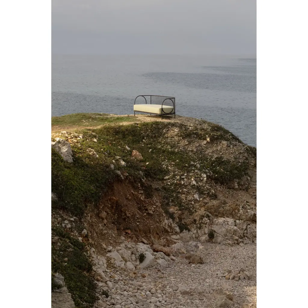 This bronze outdoor sofa, designed by Adam D. Tihany, blends contemporary design with skilled craftsmanship. Its circular motif adds a touch of elegance and structural purpose, making it both decorative and functional. Complete the look with matching armchairs, tables, and seats available in various shades. A timeless addition to any outdoor space.
