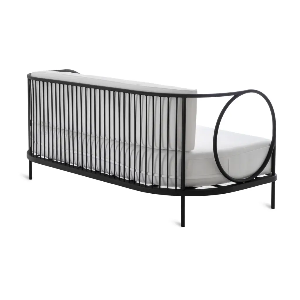 This bronze outdoor sofa, designed by Adam D. Tihany, blends contemporary design with skilled craftsmanship. Its circular motif adds a touch of elegance and structural purpose, making it both decorative and functional. Complete the look with matching armchairs, tables, and seats available in various shades. A timeless addition to any outdoor space.