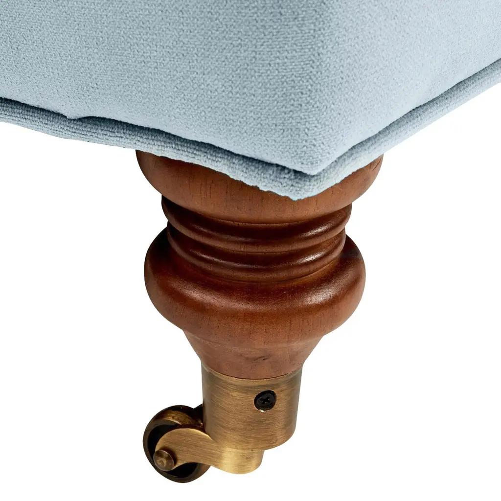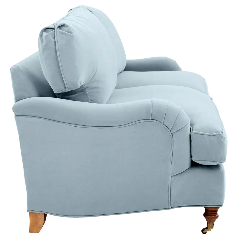 Designed by us and available only at One Kings Lane: This English-arm sofa is made elegant and inviting with a relaxed silhouette framed in kiln-dried hardwood, finely turned front legs capped with brass casters, and a lofty down-and-feather fill.