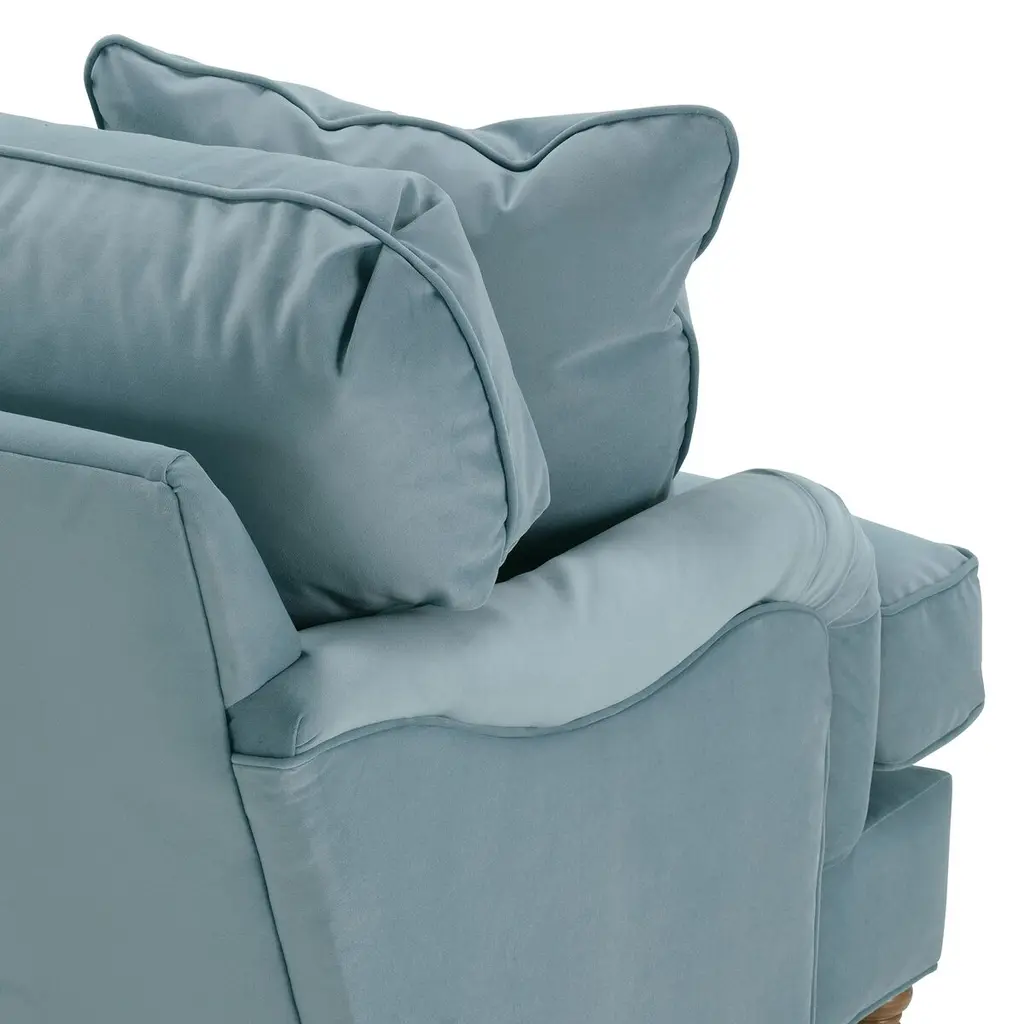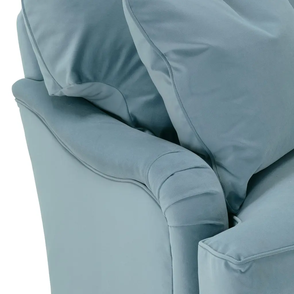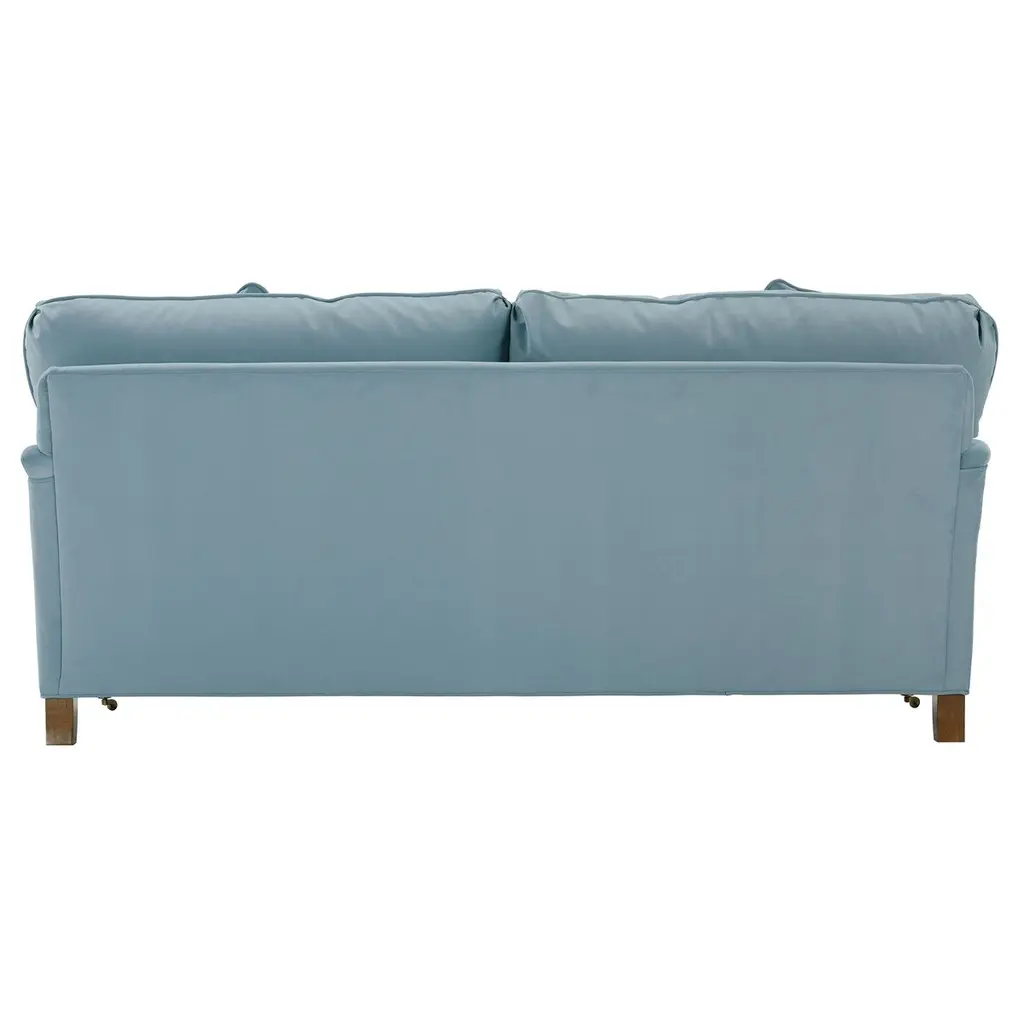 Designed by us and available only at One Kings Lane: This English-arm sofa is made elegant and inviting with a relaxed silhouette framed in kiln-dried hardwood, finely turned front legs capped with brass casters, and a lofty down-and-feather fill.