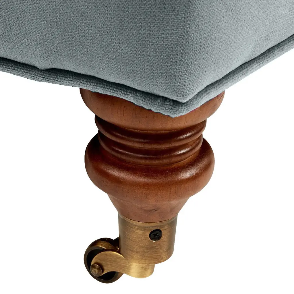 Designed by us and available only at One Kings Lane: This English-arm sofa is made elegant and inviting with a relaxed silhouette framed in kiln-dried hardwood, finely turned front legs capped with brass casters, and a lofty down-and-feather fill.