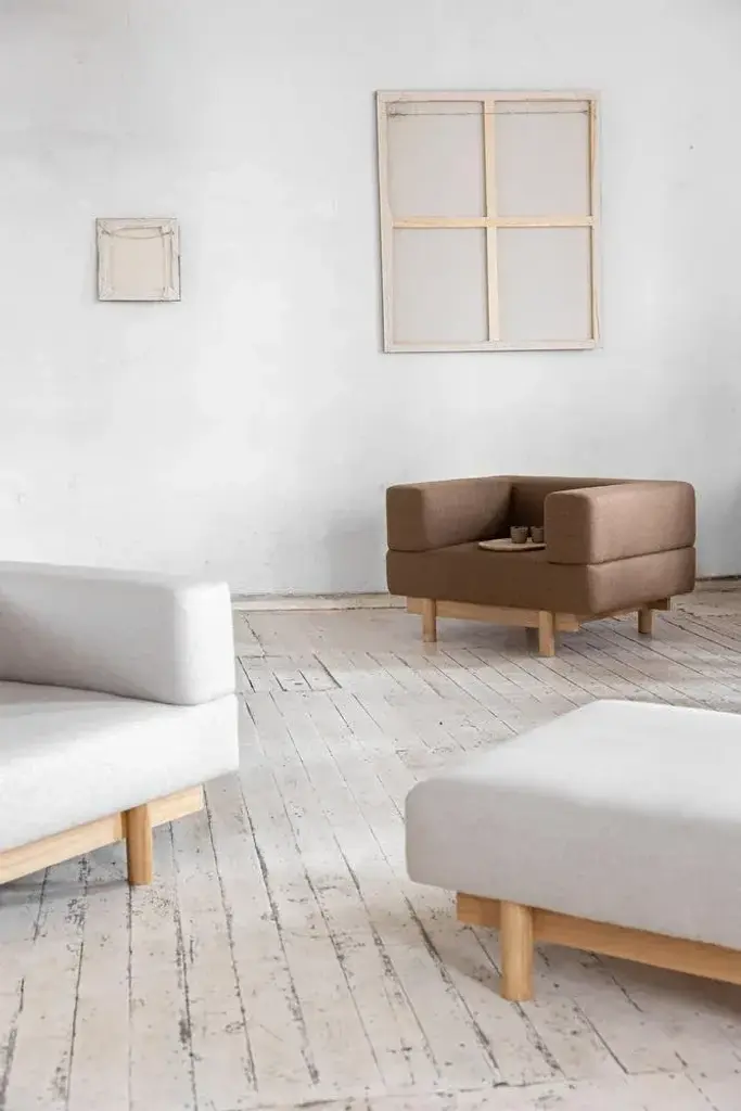 Introducing the Alchemist collection - a series of sophisticated sofas, armchairs and poufs, that exude timeless elegance. Melding modernist design with traditional Japanese structures, this collection is a masterpiece of balance and proportion, boasting clean lines that are both minimal and refined. Crafted with meticulous attention to detail, the soft pillows of the Alchemist are sculpted to perfection, seamlessly sitting on an oak-veneered frame. The structure of the sofa is characterized by sharp, well-defined lines that run along all sides, creating a welcoming and visually stunning piece from every angle. In any room it graces, the Alchemist's composed posture radiates a sense of calm and comfort, offering a perfect retreat for relaxation and rejuvenation. This collection is a true work of art, seamlessly blending style and comfort into a statement piece that will elevate any space. Labeled by Maker
