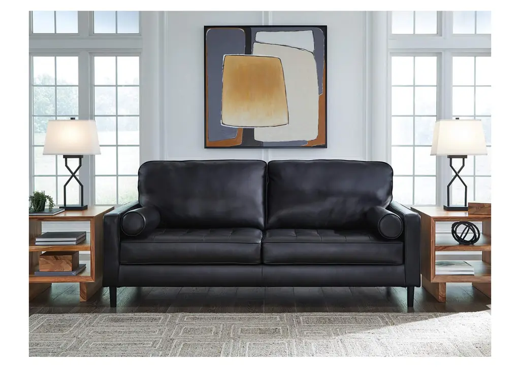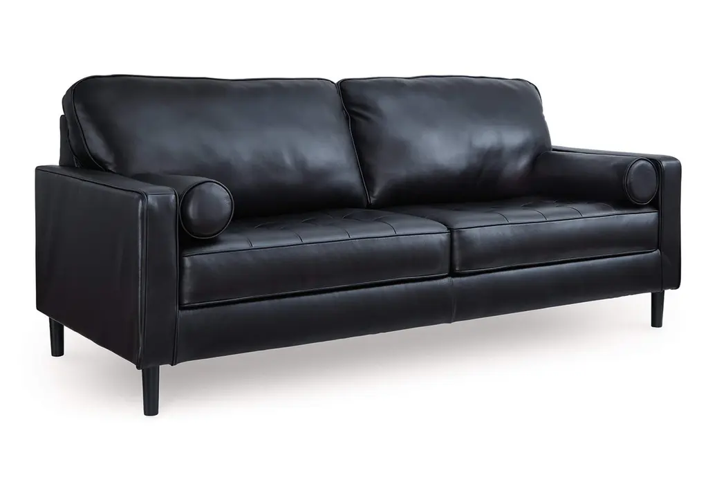 The Bryceview sofa embodies timeless mid-century elegance with its linear design, sleek track arms and tapered legs. Genuine leather in the seating area adds a luxurious touch to the overall look. Experience endless style opportunities for today's living spaces. Weight 127.000 lbs. (57.15kgs.)