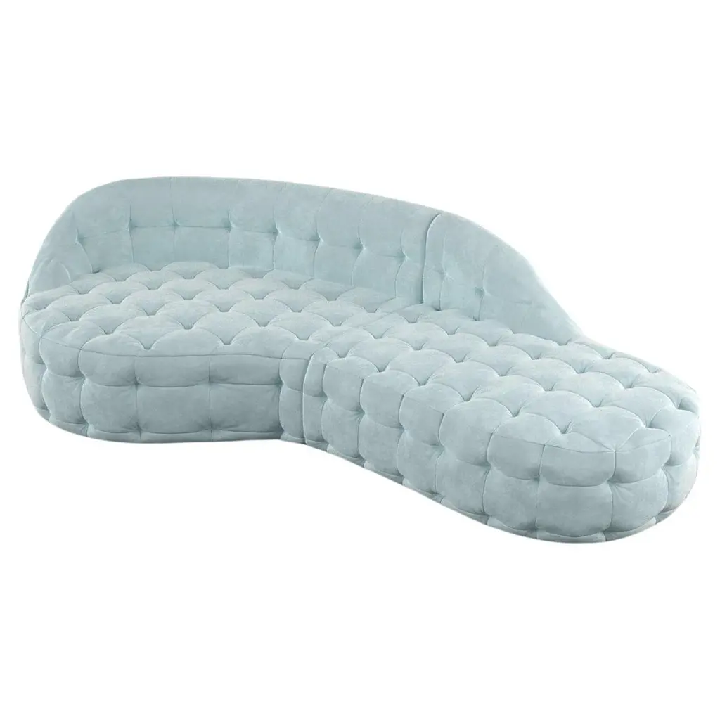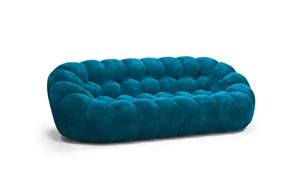 Created by Sacha Lakic, a designer with a passion for cutting-edge technology, Bubble expresses the balance between innovation, function and emotion. Inspired by natural and mineral forms and entirely handmade, its design required the development of specific stretch fabrics that perfectly fit its round shapes. With its unique style, the Bubble sofa, in straight or rounded version, is an iconic model in the Roche Bobois collection.