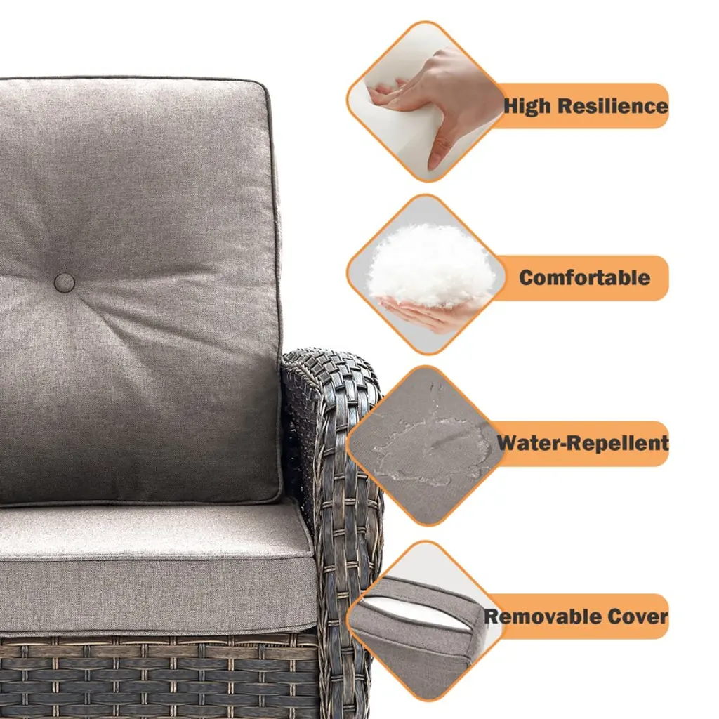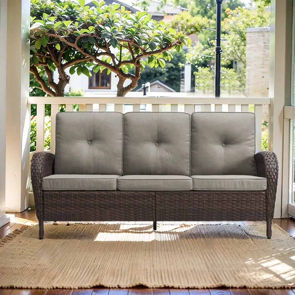 Buenhomino Outdoor Furniture 3-seater Rattan Sofa Patio Wicker Sofa Couch Furniture Set With High Back,gray/brown Wicker