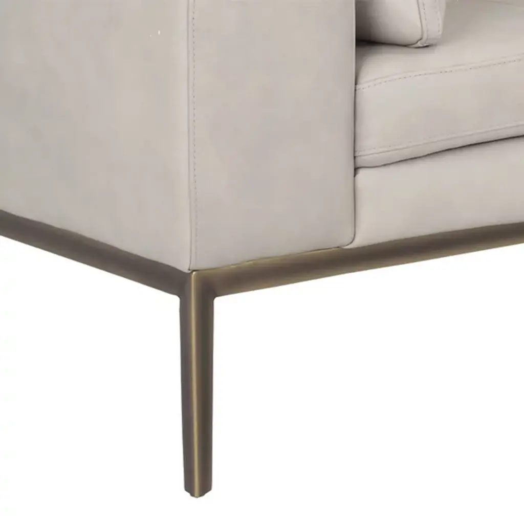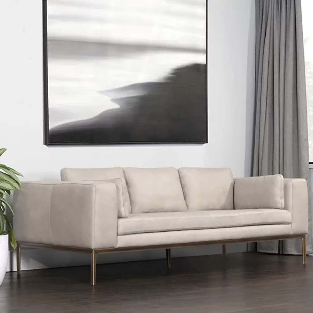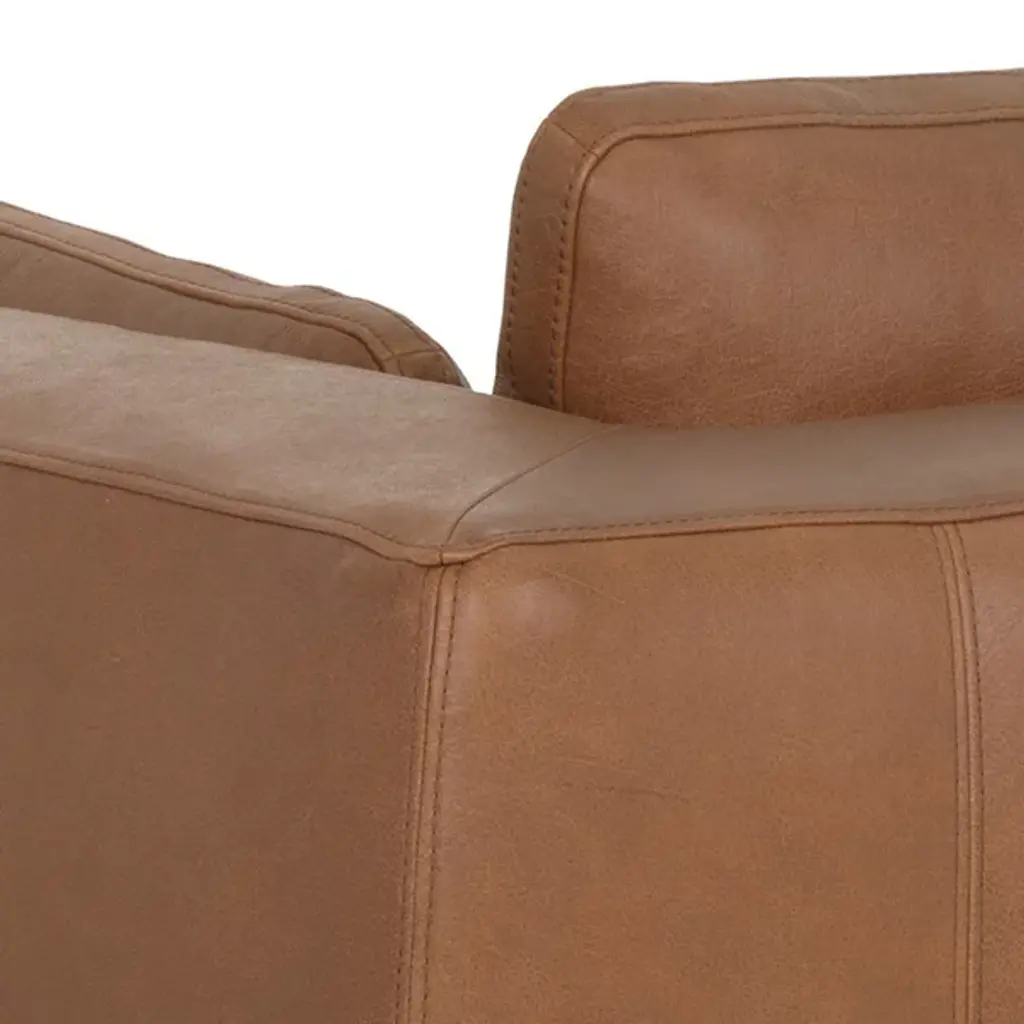 The Burr Sofa from Sunpan delivers commanding elegance through meticulously considered proportions. The generous design features expansive armrests and deep seating wrapped in premium bovine leather that develops distinctive character through natural markings and patina. Rustic bronze-finished steel legs elevate the sofa while providing a strong industrial foundation that enhances its contemporary appeal. This refined design brings a sophisticated presence accentuated with layers of exceptional comfort to modern living spaces.