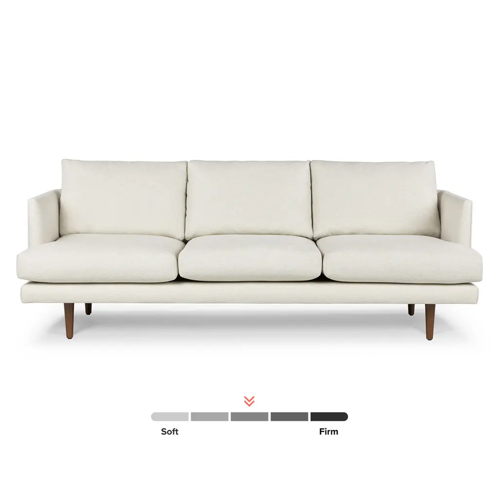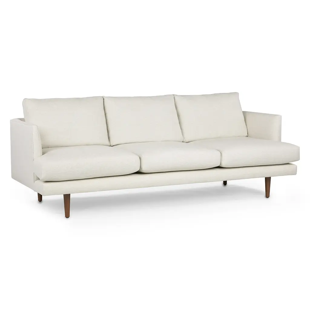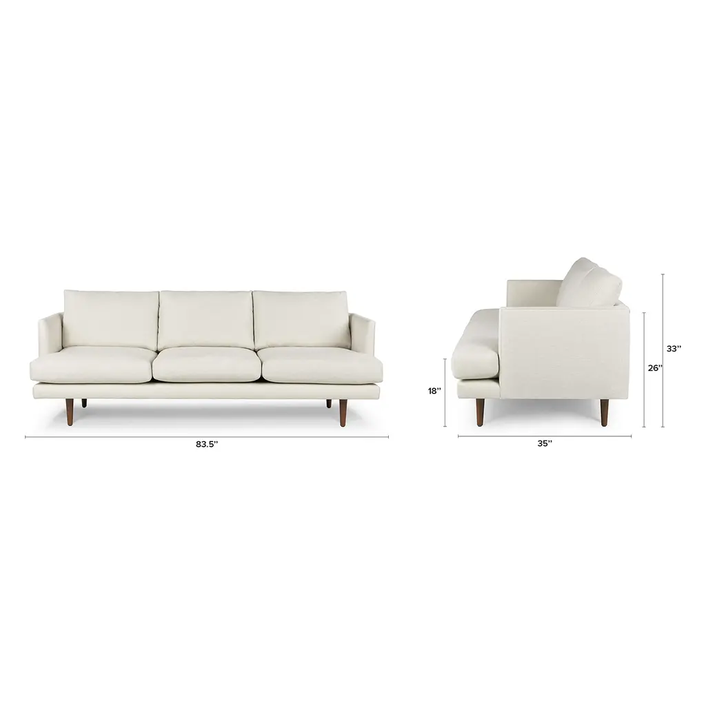 The Burrard seasalt gray sofa fits your space like a well-tailored suit. Sharp corners, slip-covered cushions make this light gray sofa easy to pair with tons of different decor styles. The slender arms and mid-century silhouette are both timeless and modern. Honestly what more can a person want in a sofa? How bout solid walnut legs? Okay fine.