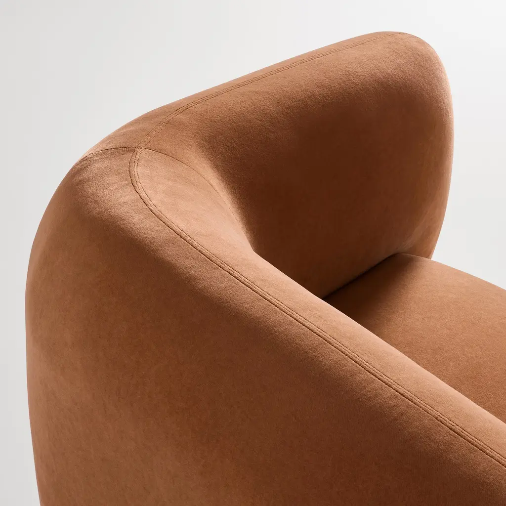 Flaunting clean lines and gently curving contours, Bustle is a study in sophistication. A smooth, continuous seat pampers your posterior and minimizes searches for the remote. A cozy wraparound backrest encourages canoodling and appears to float, adding extra beauty to Bustle’s backside.
