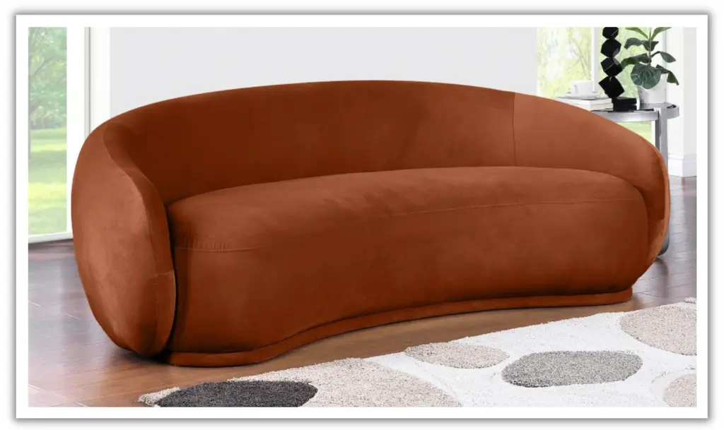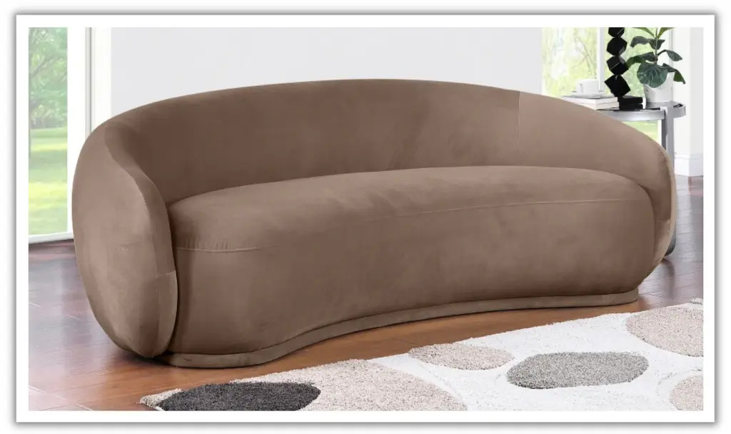 Flaunting clean lines and gently curving contours, Bustle is a study in sophistication. A smooth, continuous seat pampers your posterior and minimizes searches for the remote. A cozy wraparound backrest encourages canoodling and appears to float, adding extra beauty to Bustle’s backside.