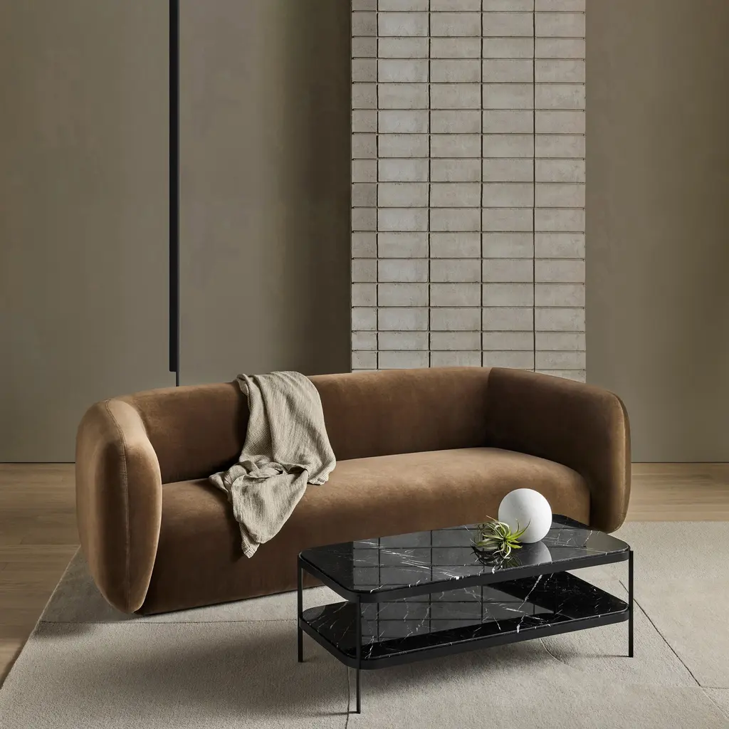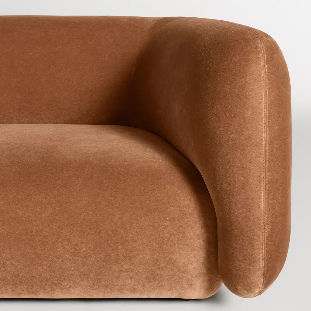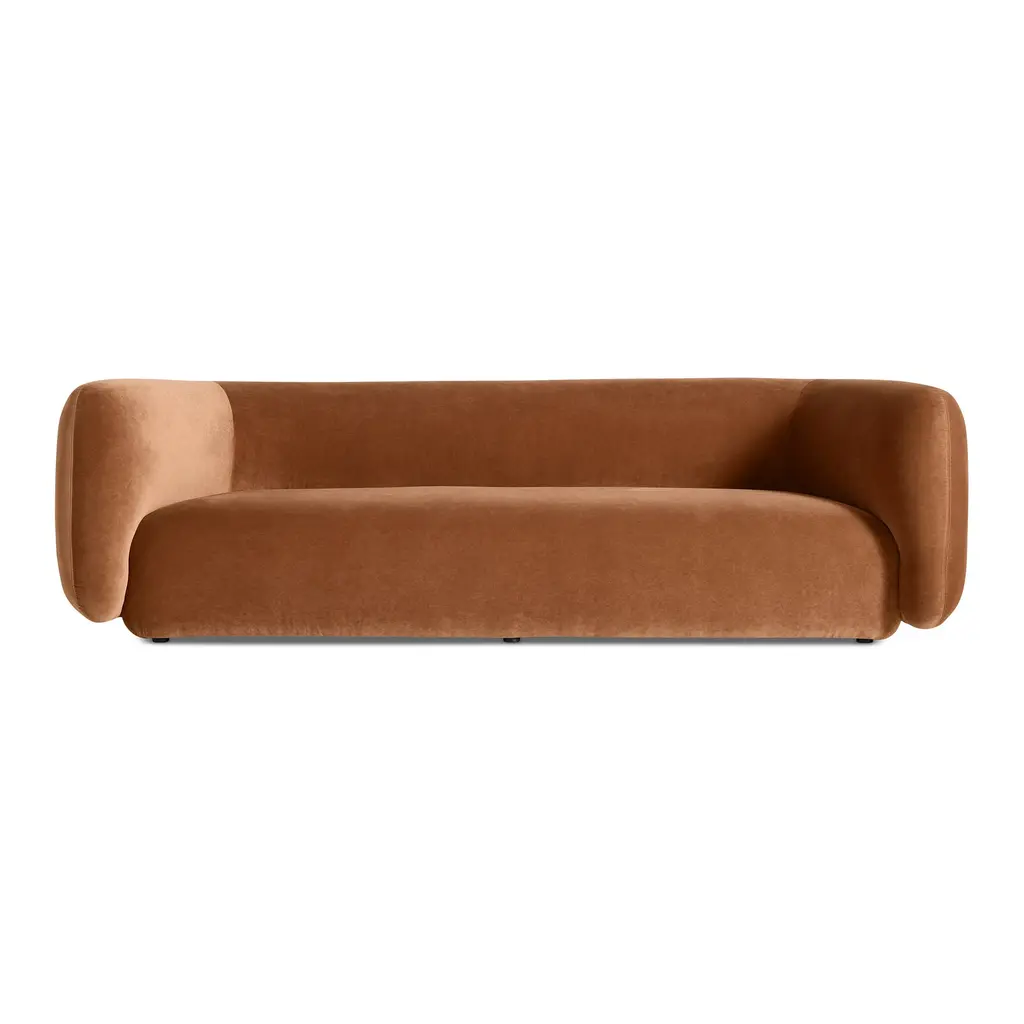 The Bustle Sofa from Blu Dot exudes sophistication with its clean lines and curved design. Its smooth, continuous seat provides optimal comfort and eliminates the need for remote-hunting. The wraparound backrest invites cozy canoodling and adds an elegant touch to the sofa's aesthetic. Elevate your living space with this cozy and inviting piece. Highlights
