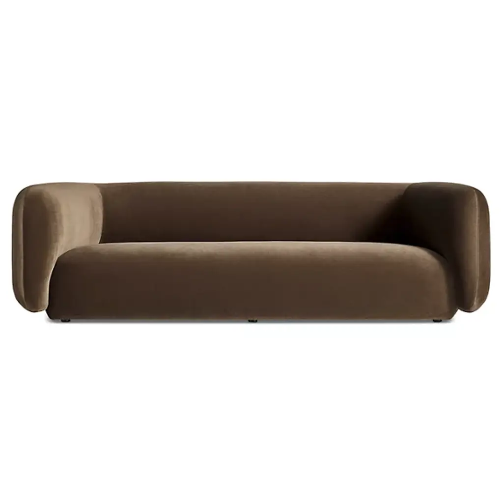 The Bustle Sofa from Blu Dot features gently curving contours and a continuous bench seat that eliminates gaps where items can disappear. High-resiliency foam cushions with fiber padding provide firm support that softens with regular use, while sinuous steel springs beneath offer lasting structural integrity. The wraparound backrest appears to float above its metal base, creating an interesting architectural detail. Tight back construction with elevated arms contributes to the tailored appearance. This piece works particularly well in modern living rooms or open-plan spaces where its sculptural qualities can be appreciated from multiple angles.