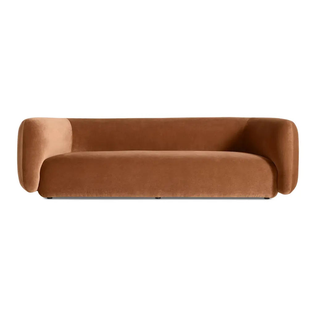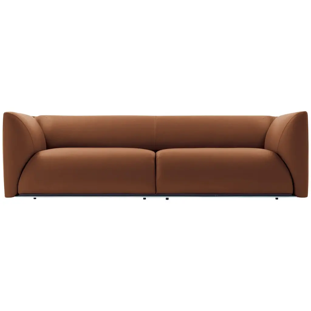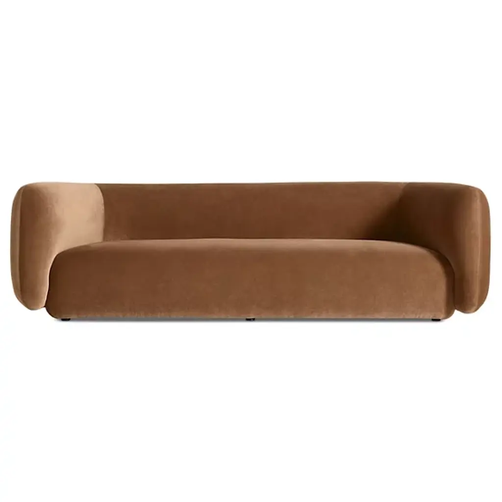 The Bustle Sofa from Blu Dot features gently curving contours and a continuous bench seat that eliminates gaps where items can disappear. High-resiliency foam cushions with fiber padding provide firm support that softens with regular use, while sinuous steel springs beneath offer lasting structural integrity. The wraparound backrest appears to float above its metal base, creating an interesting architectural detail. Tight back construction with elevated arms contributes to the tailored appearance. This piece works particularly well in modern living rooms or open-plan spaces where its sculptural qualities can be appreciated from multiple angles.