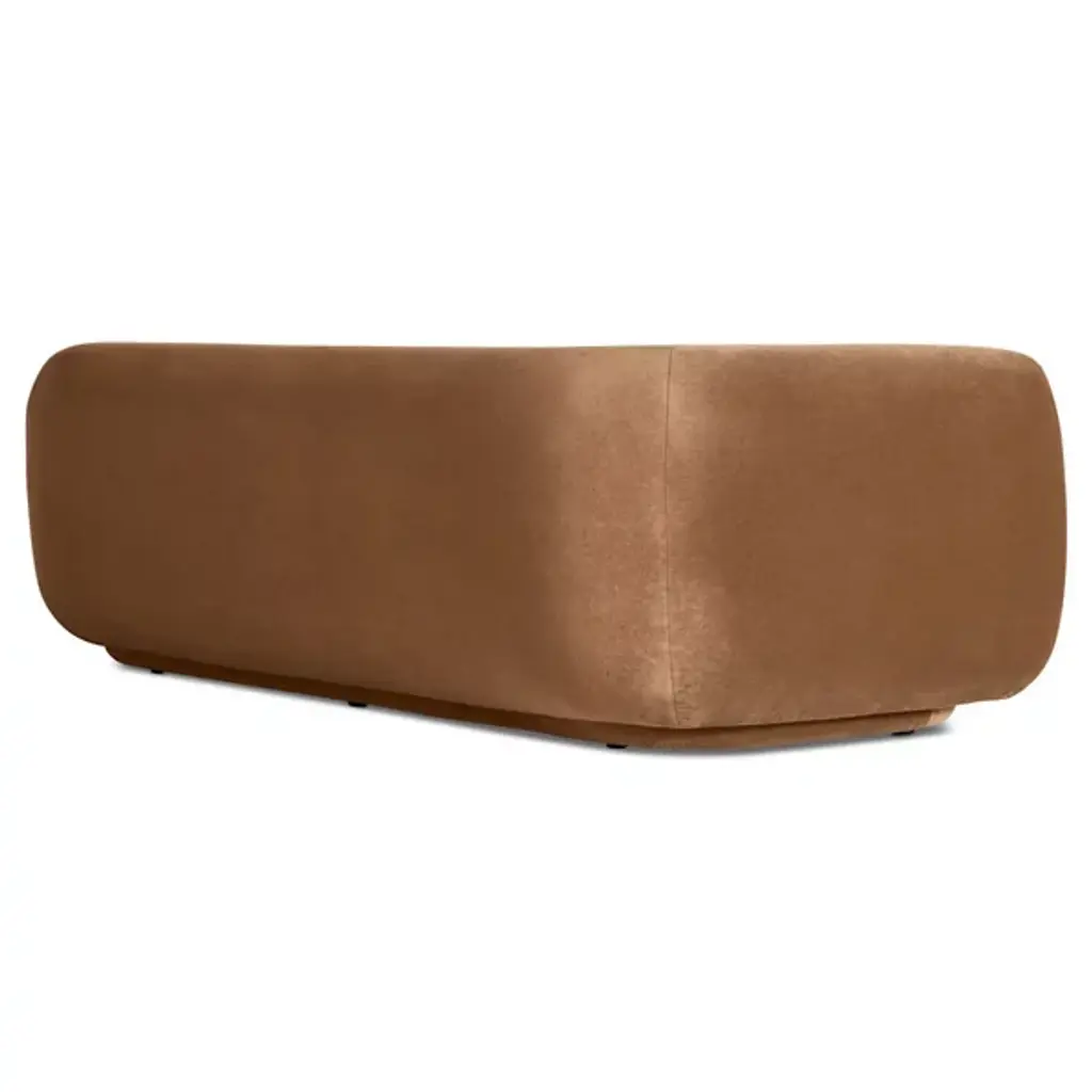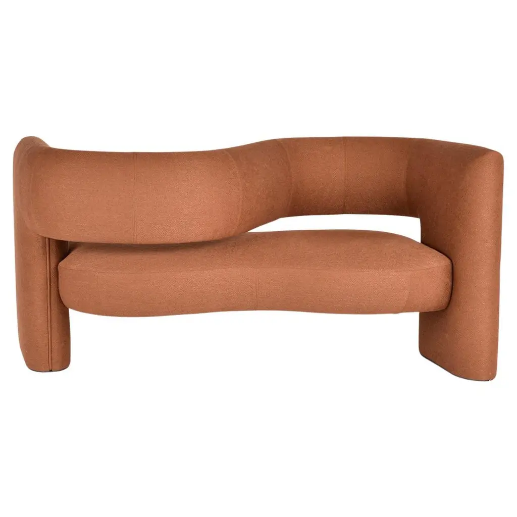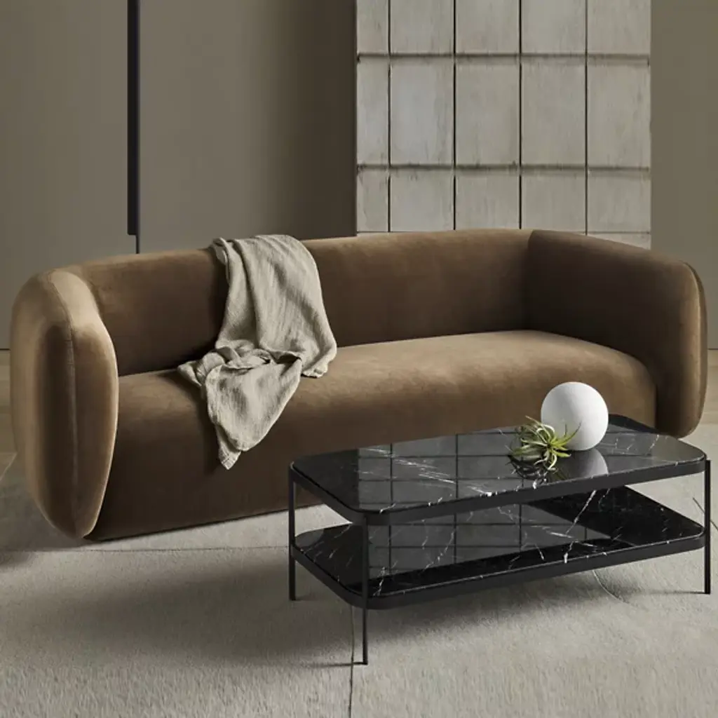 The Bustle Sofa from Blu Dot features gently curving contours and a continuous bench seat that eliminates gaps where items can disappear. High-resiliency foam cushions with fiber padding provide firm support that softens with regular use, while sinuous steel springs beneath offer lasting structural integrity. The wraparound backrest appears to float above its metal base, creating an interesting architectural detail. Tight back construction with elevated arms contributes to the tailored appearance. This piece works particularly well in modern living rooms or open-plan spaces where its sculptural qualities can be appreciated from multiple angles.