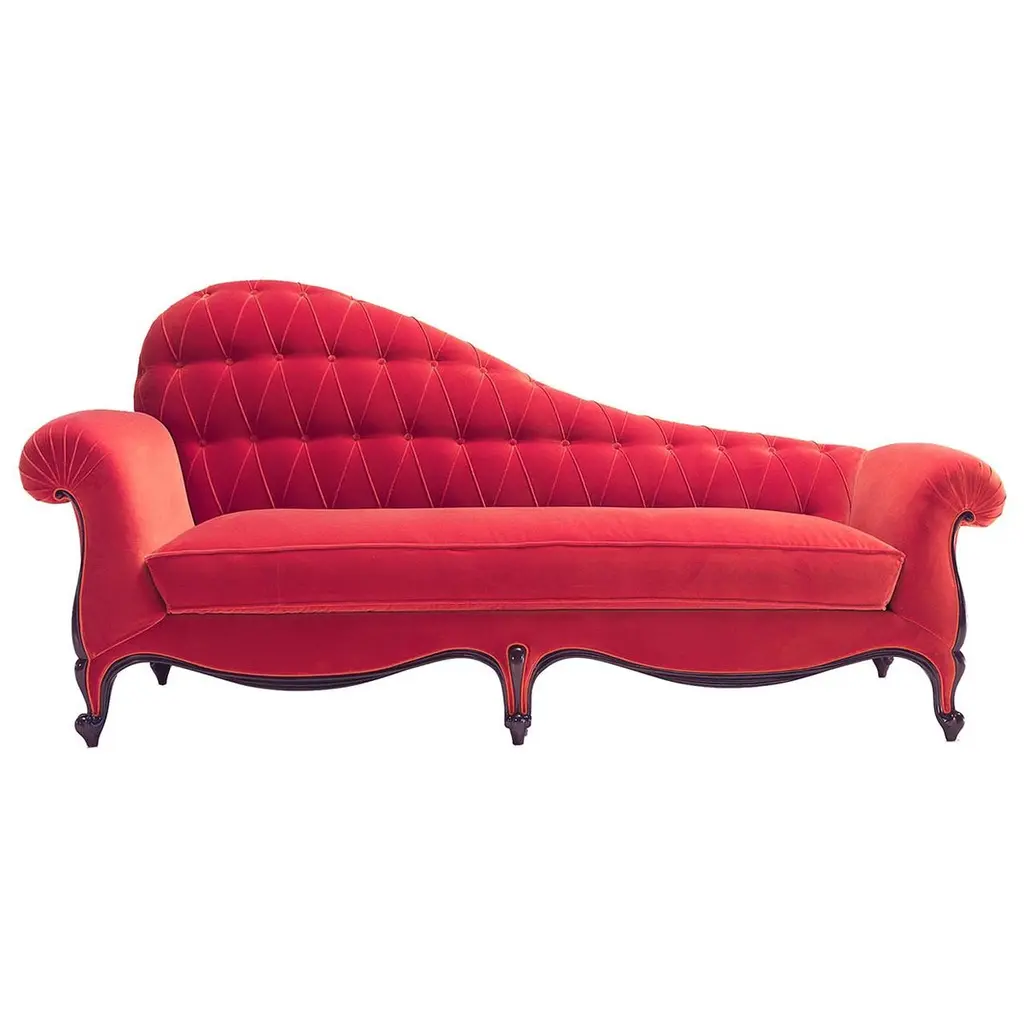 Sofa butterfly large made with solid mahogany wood structure.Upholstered with high quality red velvet fabric or customer fabricon request. Also available with different structure finishes anddifferent fabric finishes, on request. Also available in sofa butterflyMedium size, L 230 x D 94 x H 100cm. Price: 28500,00€. Exceptional piece.