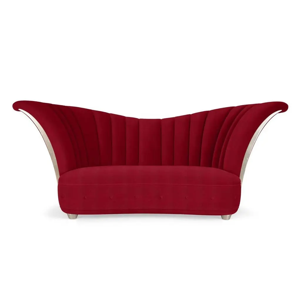 Butterfly Sofa With Solid Mahogany Wood Structure And Red Velvet